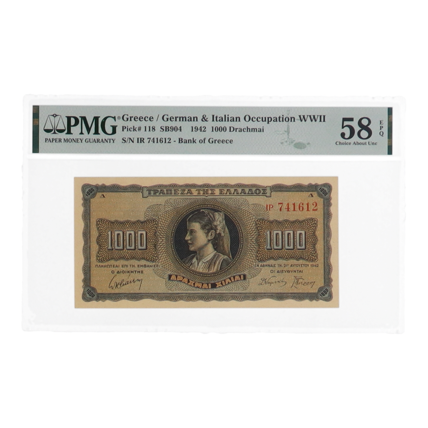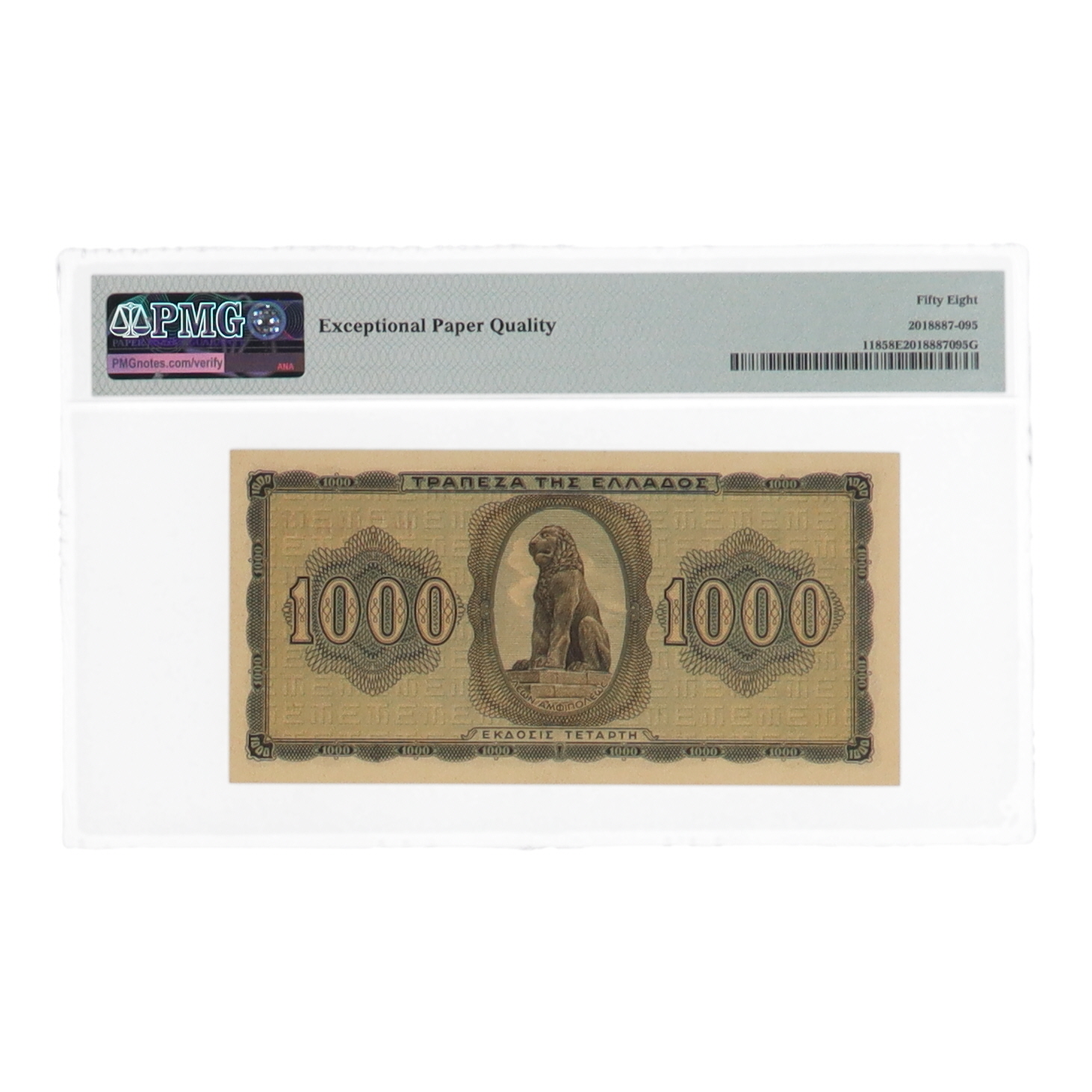 1942 Greece 1,000 Drachmai Bank of Greece Banknote (PMG Choice AU 58EPQ)