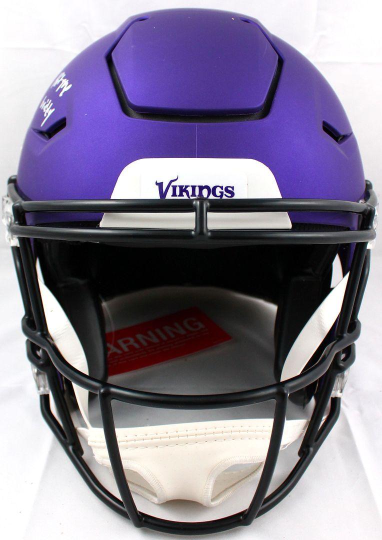 Riddell Minnesota Vikings full-size authentic on-field SpeedFlex helmet. Hand-signed and inscribed by Justin Jefferson.