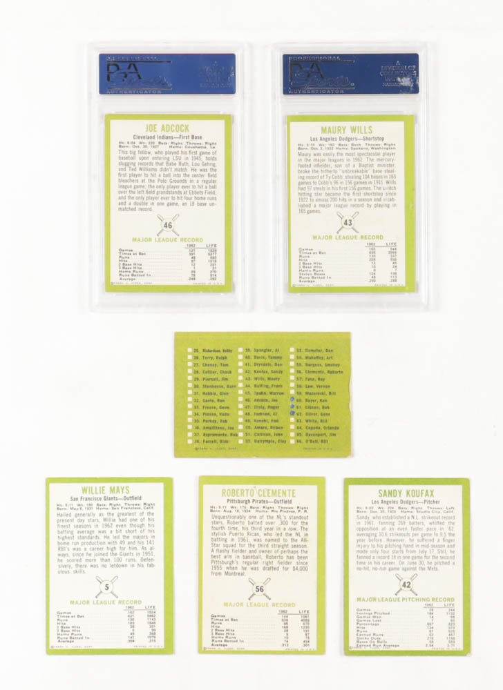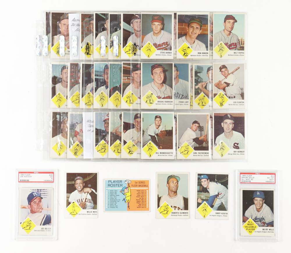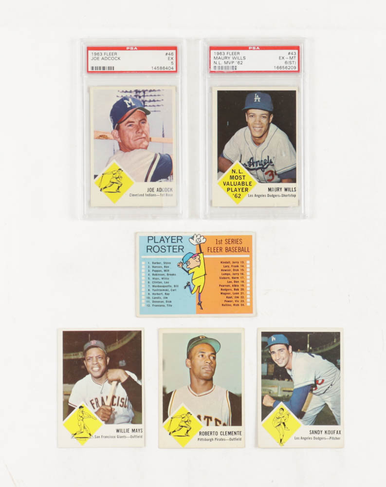 1963 Fleer Baseball Complete Set of (67) Cards with Checklist #NNO SP, Willie Mays #5 , Roberto Clemente #56, Sandy Koufax #42, Maury Wills #43 RC