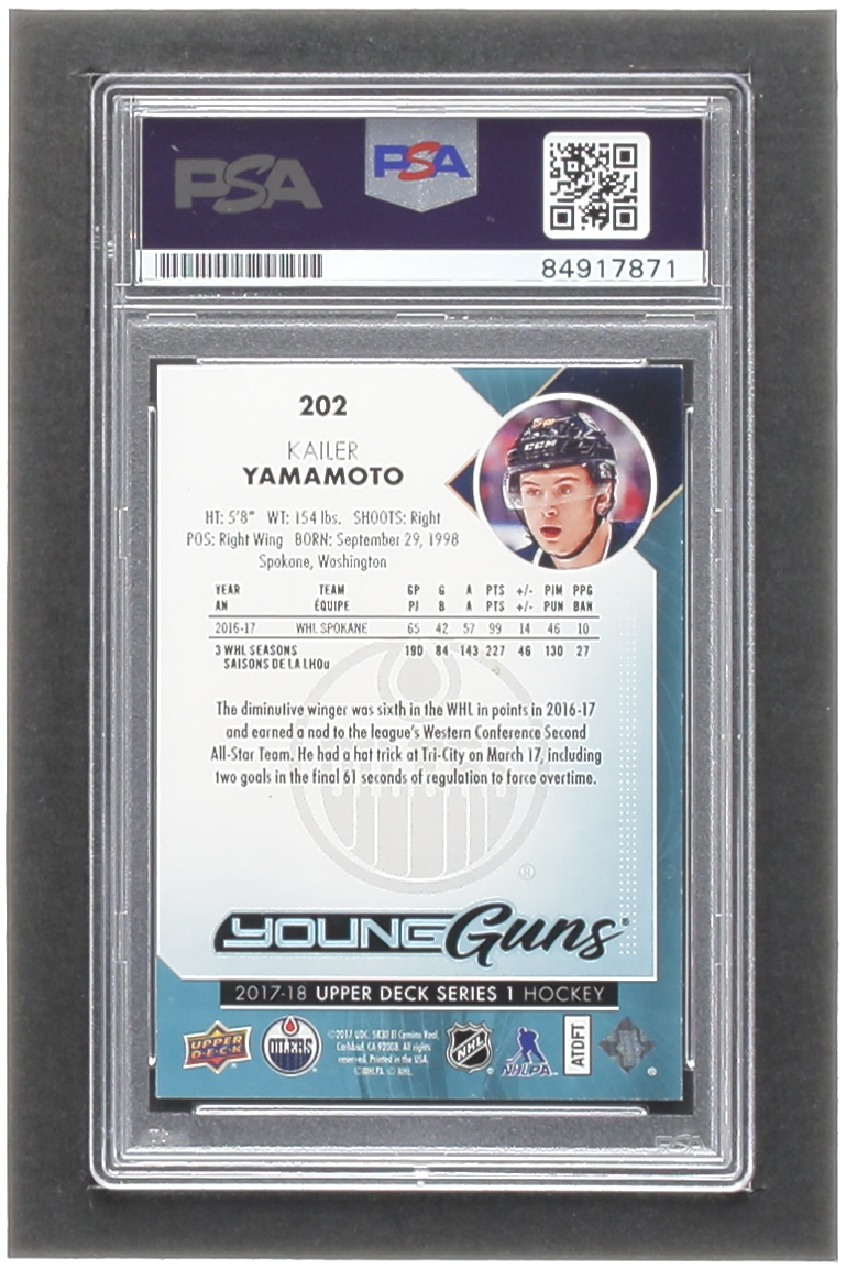 Kailer Yamamoto Signed 2017-18 Upper Deck #202 YG RC (PSA)