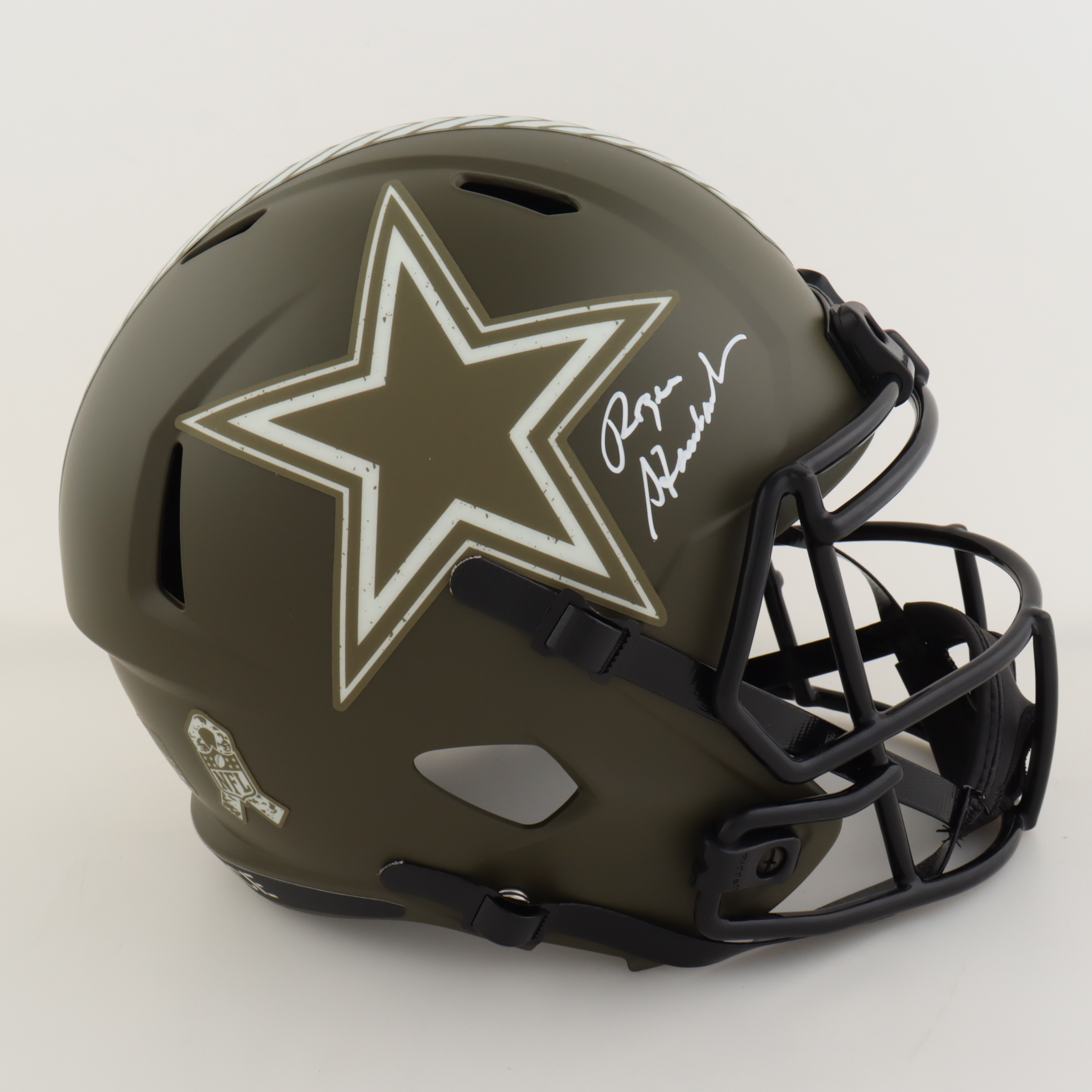 Riddell Dallas Cowboys Full-Size Replica Salute To Service Alternate Speed Helmet. Hand-signed by Roger Staubach (HOF).