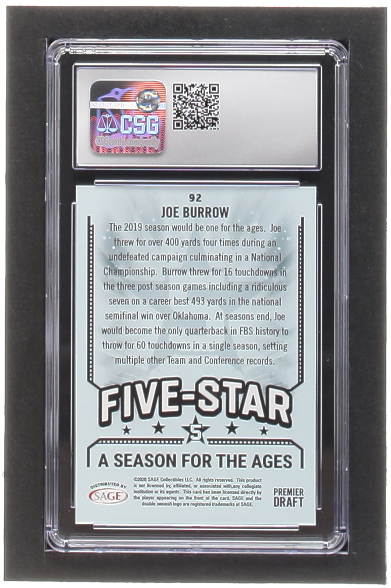 Joe Burrow 2020 SAGE HIT Green #92 RC (CSG 9)