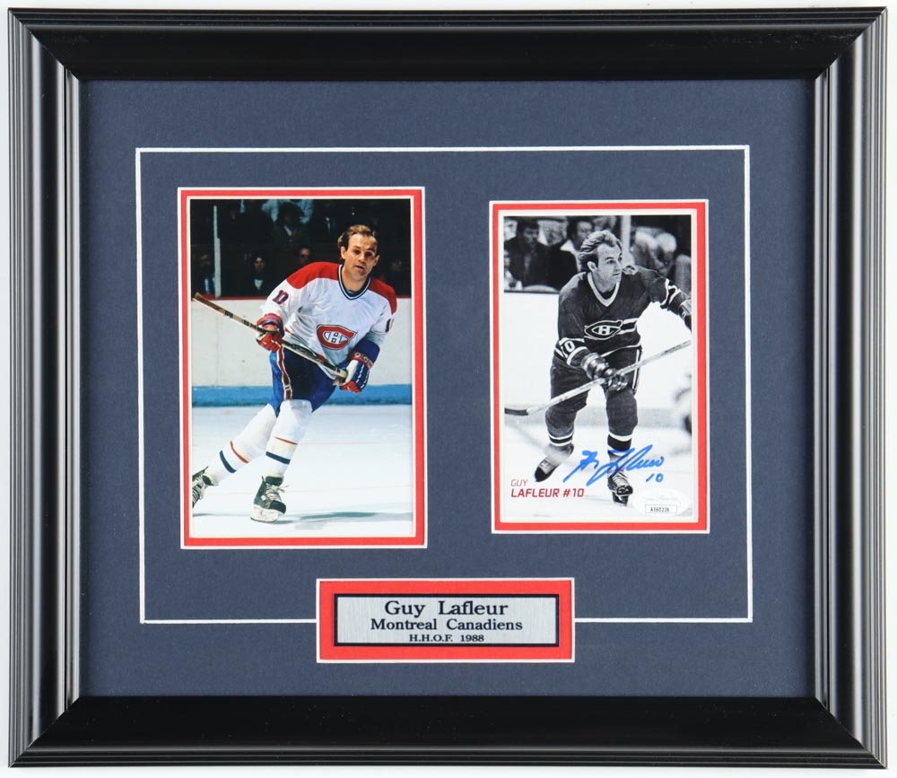 Custom frame measures 13" x 15" in size and features a photo that has been hand-signed by Guy Lafleur (Montreal Canadiens, HOF).
