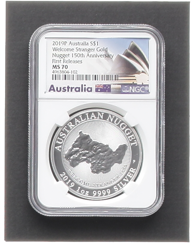 2019-P Australia Nugget - Welcome Stranger Gold - First Releases - 150th Anniversary Label One Dollar Silver Coin (NGC MS70)