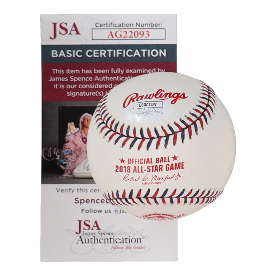 Rawlings Official 2018 All-Star Game baseball. Hand-signed and inscribed by Eugenio Suarez (Cincinnati Reds).