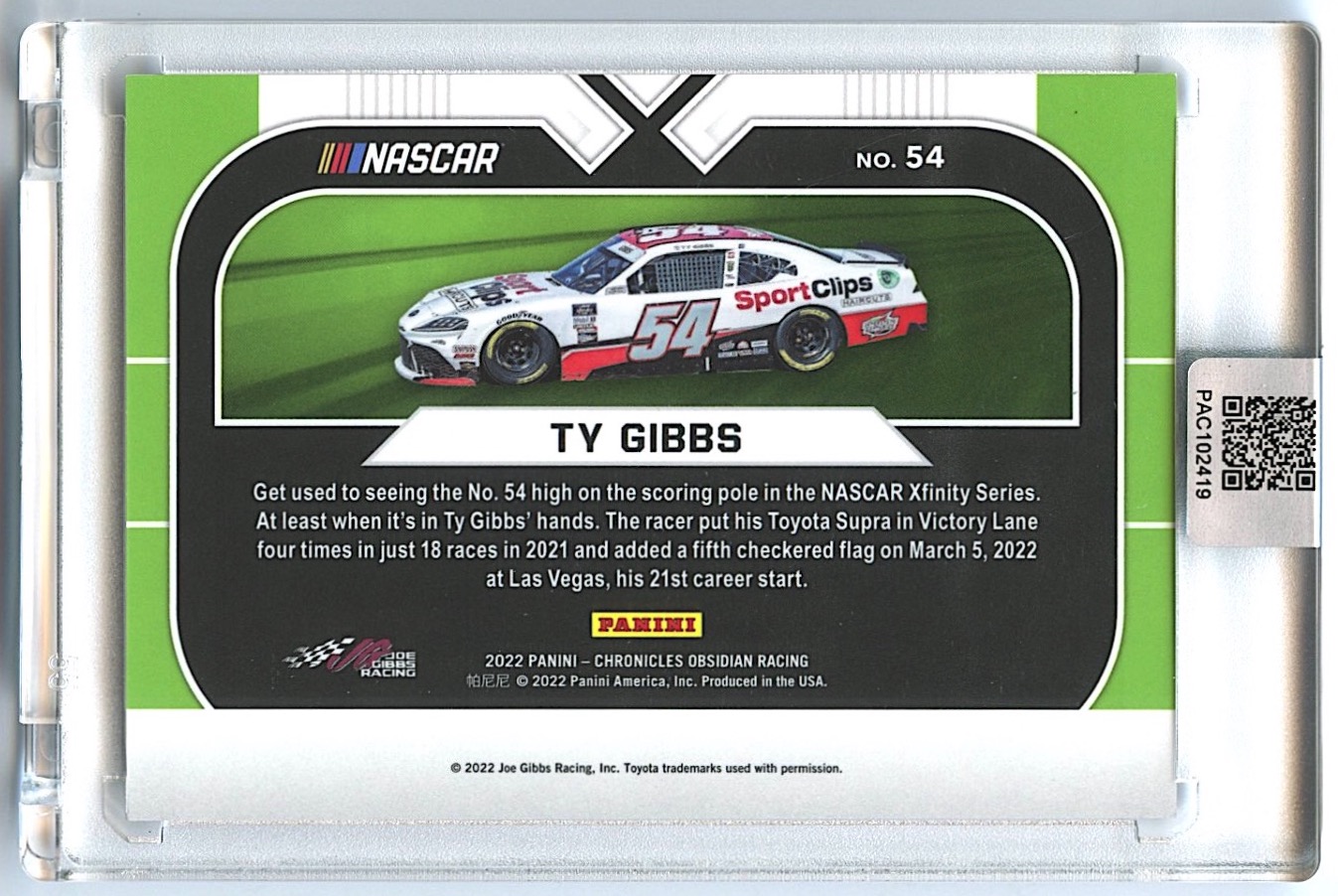 NASCAR trading card has been hand-signed by Ty Gibbs.