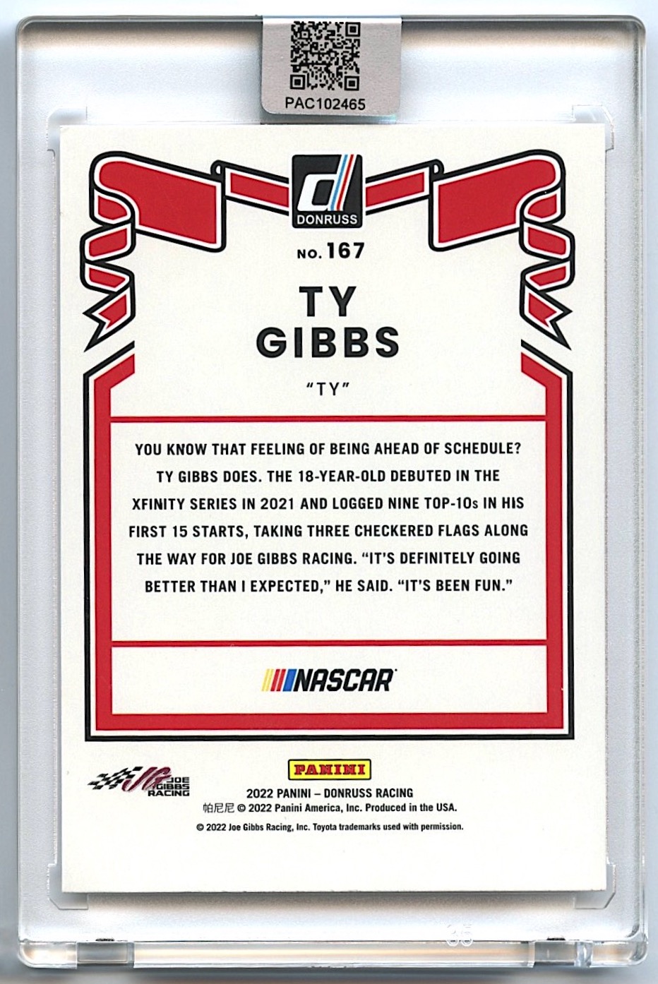 Ty Gibbs Signed 2022 Donruss #167 Retro (PA Encapsulated)