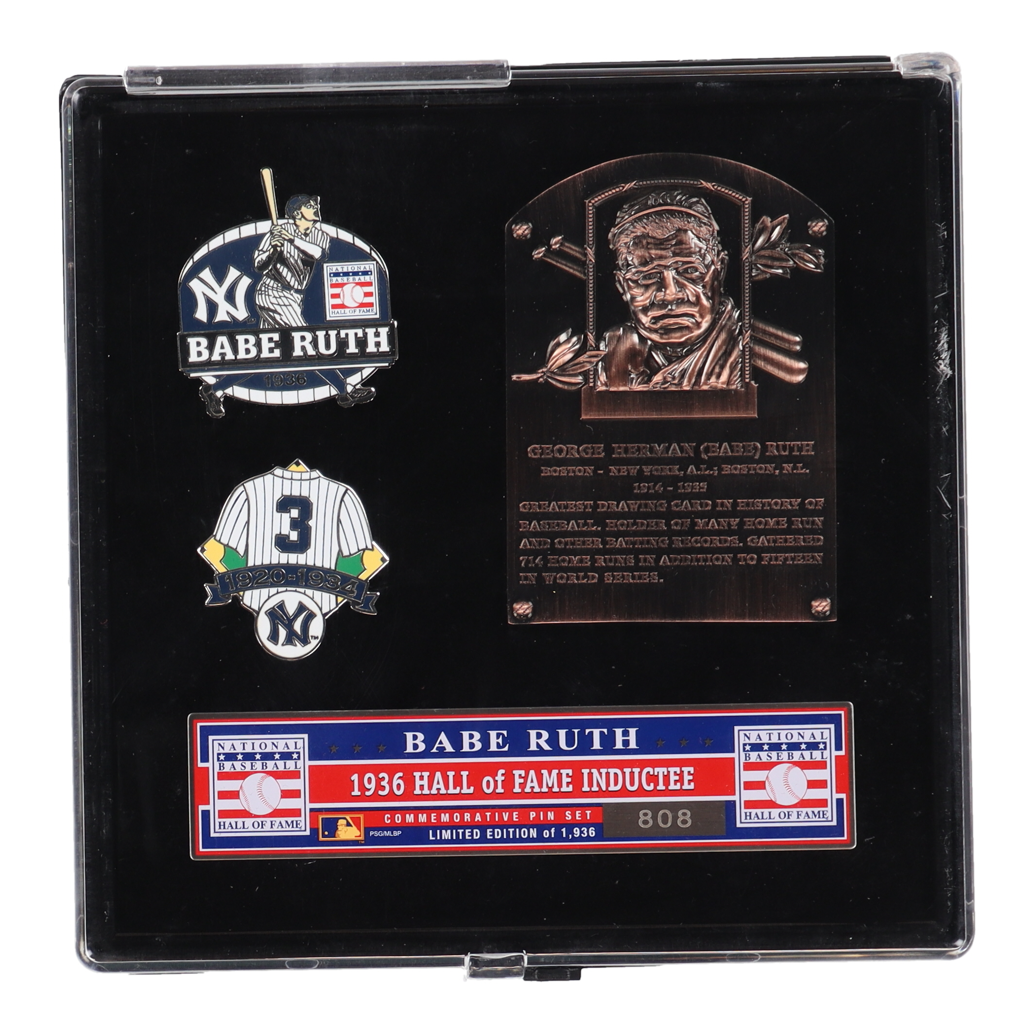 Babe Ruth LE Bronze HOF Plaque Commemorative Pin Set #808/1,936