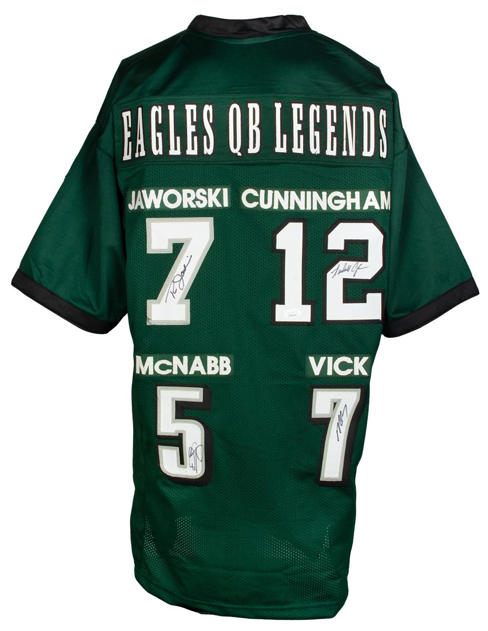 Eagles "QB Legends" Jersey Signed by (4) with Ron Jaworski, Donovan McNabb, Michael Vick & Randall Cunningham (JSA)