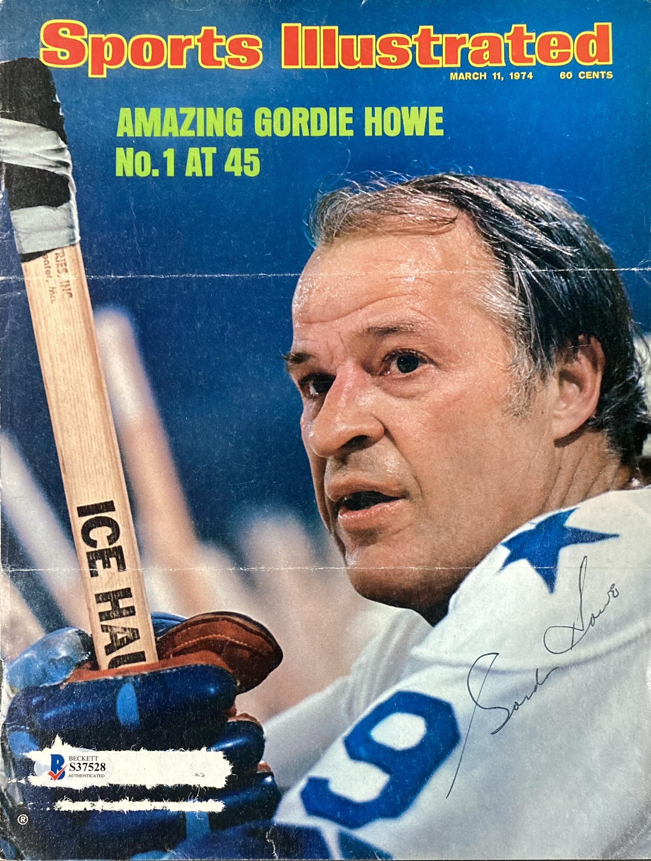March 11th, 1974 "Sports Illustrated" magazine has been hand-signed on the cover by Gordie Howe (D. 2016, Hartford Whalers, HOF).