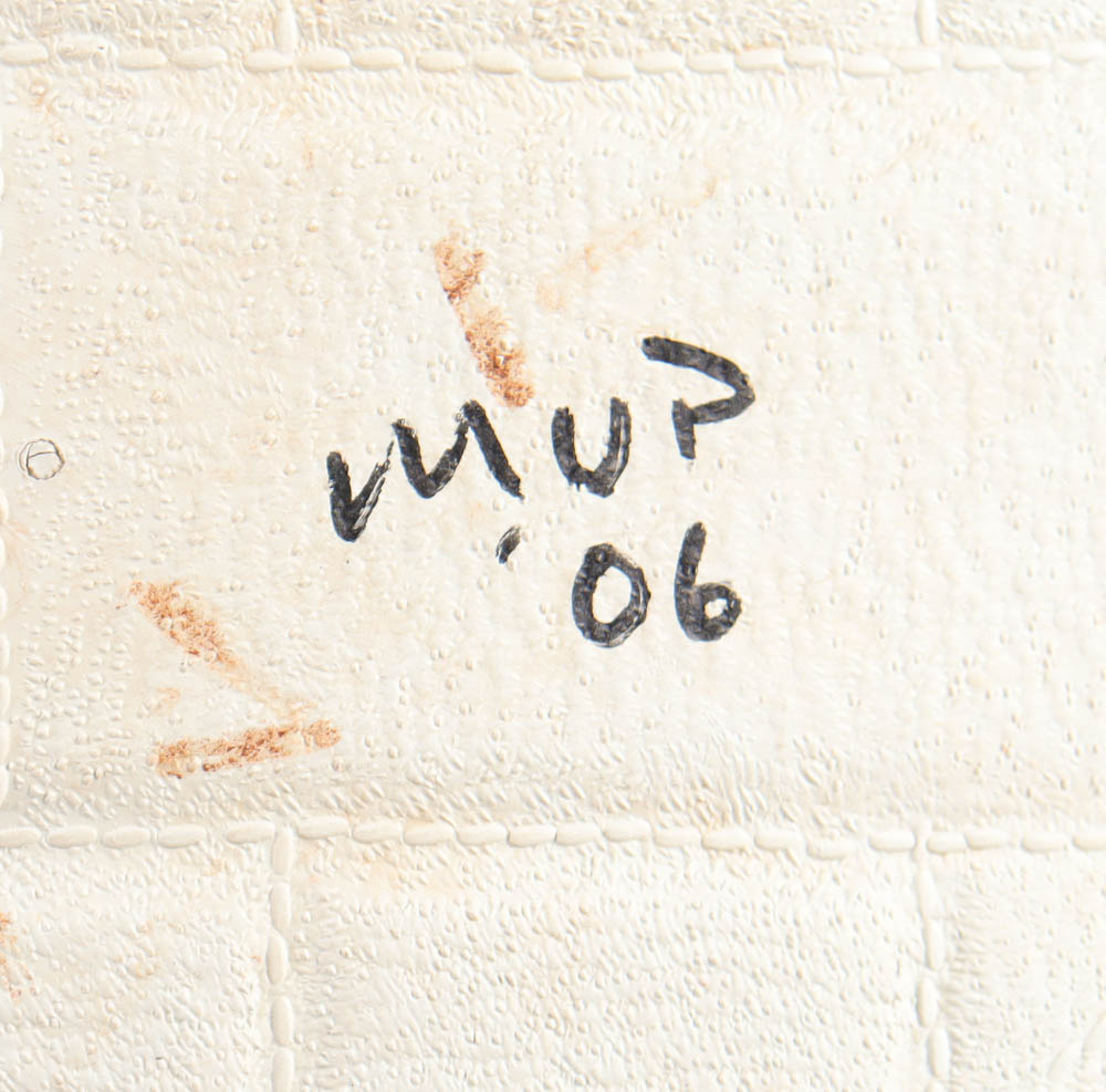 Philadelphia Phillies game-used base has been hand-signed and inscribed by Ryan Howard (Philadelphia Phillies). Base was used during a game dated August 13th, 2006 and in the sixth inning. This base was used during Howards 41st home run.