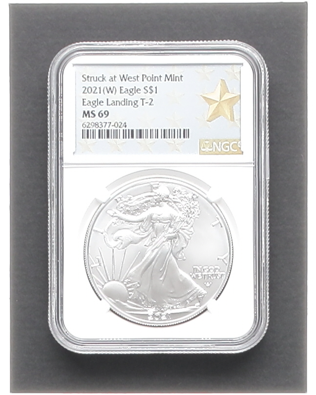 2021-W American Silver Eagle Landing T-2 S $1 One Dollar Coin Struck at West Point Mint (NGC MS69)