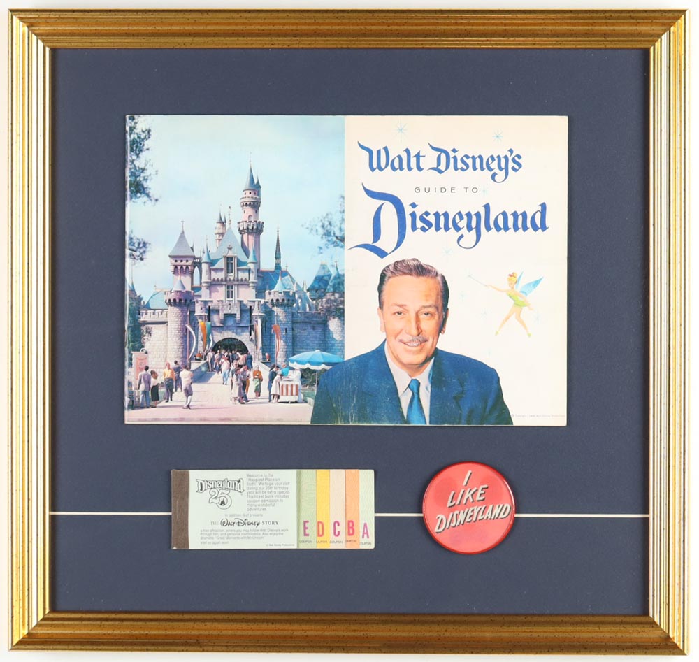 "Walt Disney's Guide to Disneyland" Custom Framed Vintage 1958 Disney Blinker Pin & Vintage Guide Book