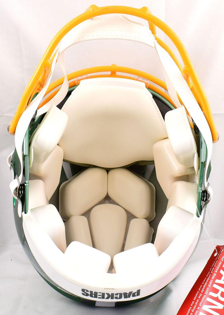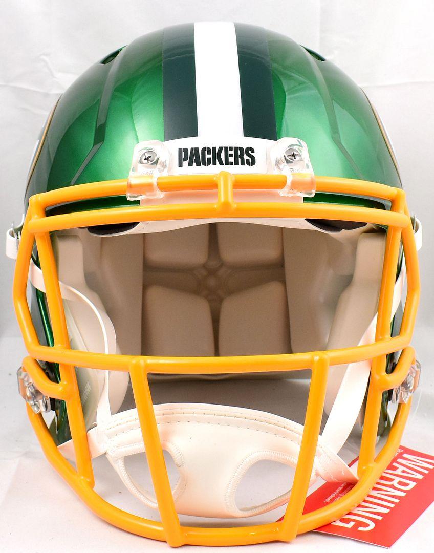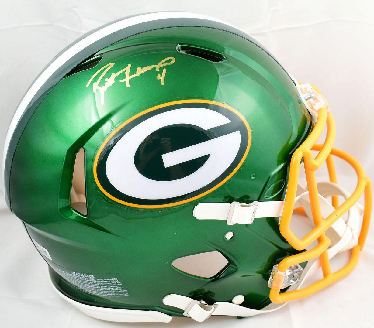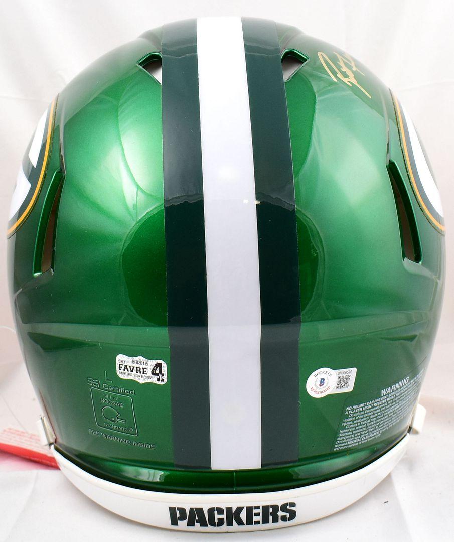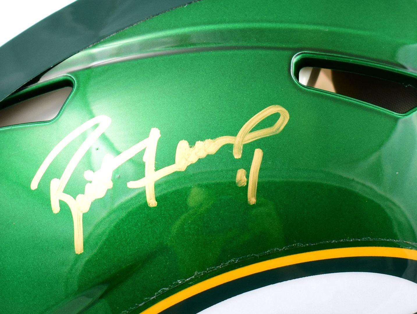 Riddell Green Bay Packers Flash Alternate full-size authentic on-field speed helmet. Hand-signed by Brett Favre (HOF).
