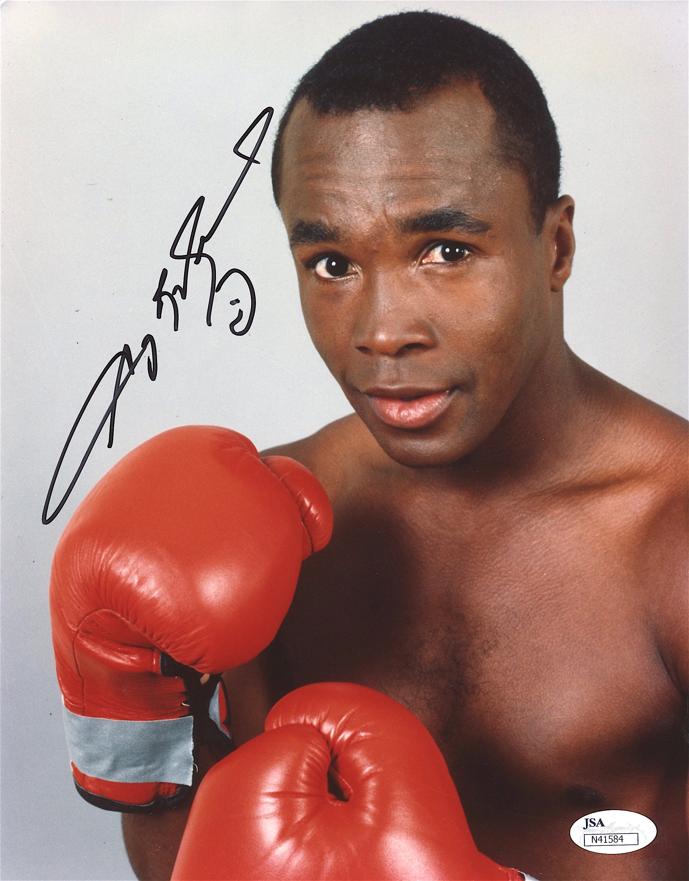 Photo measures 8" x 10" in size and has been hand-signed by Sugar Ray Leonard (HOF).