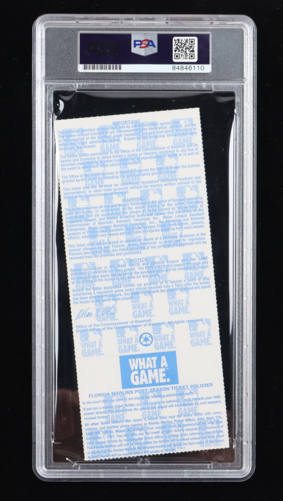 Liván Hernández Signed 1997 World Series Game 2 Ticket Inscribed "97 WS MVP" (PSA)