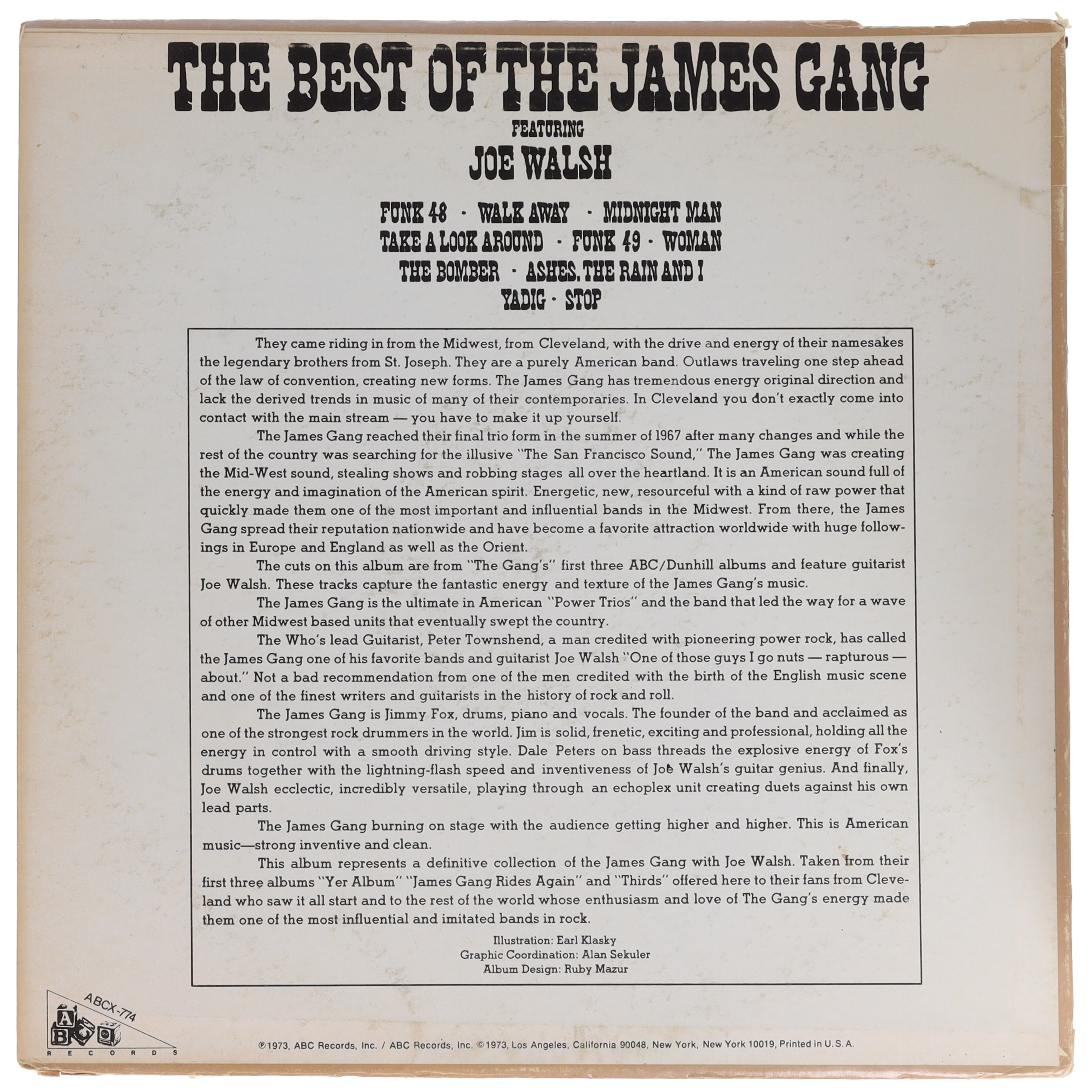 Album cover has been hand-signed by Joe Walsh (HOF). Please note, the vinyl record is not included.