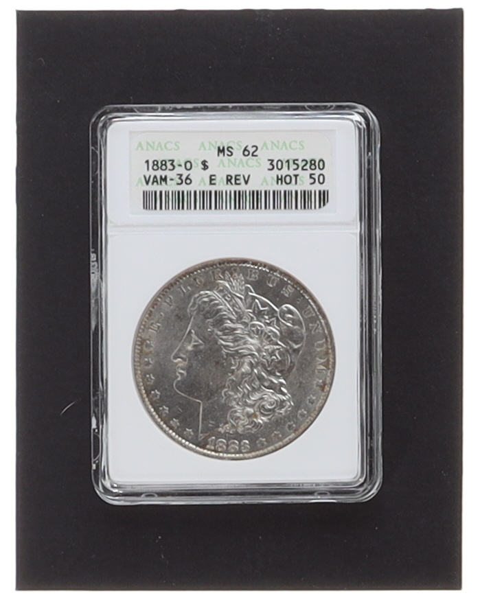 1883-O Morgan Silver Dollar Coin Hot 50 VAM-36 "E" Rev (ANACS MS62)