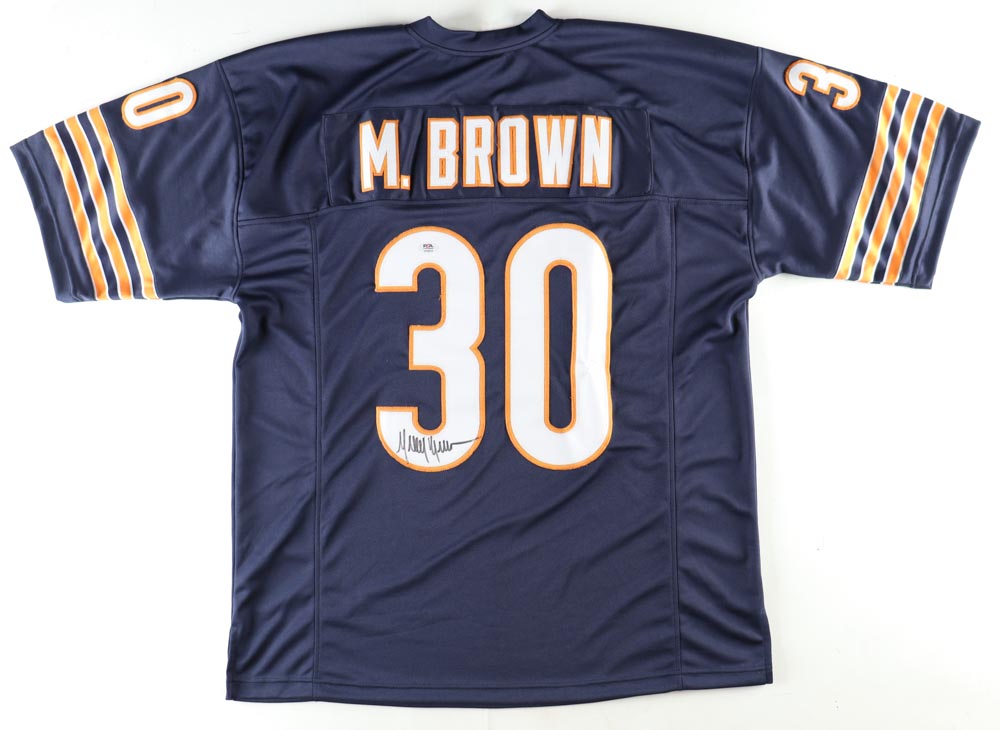 Custom on-field style jersey. Everything is sewn on, size XL. Has been hand-signed by Mike Brown.