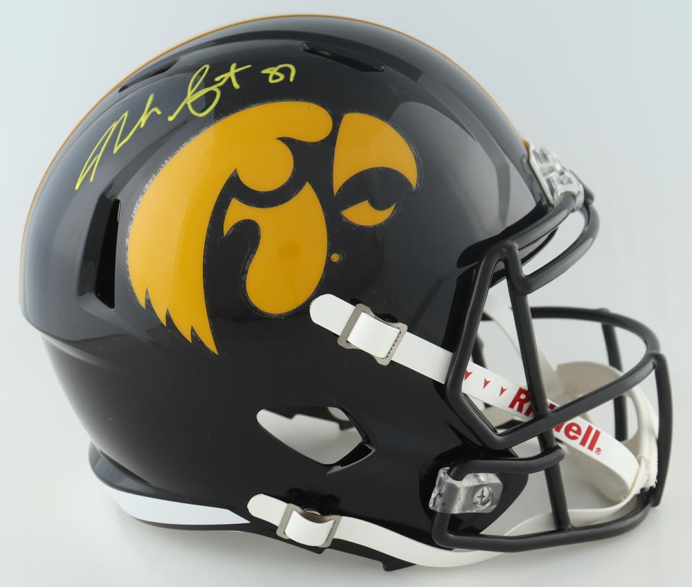 Riddell Iowa Hawkeyes full-size replica speed helmet. Hand-signed by Noah Fant.