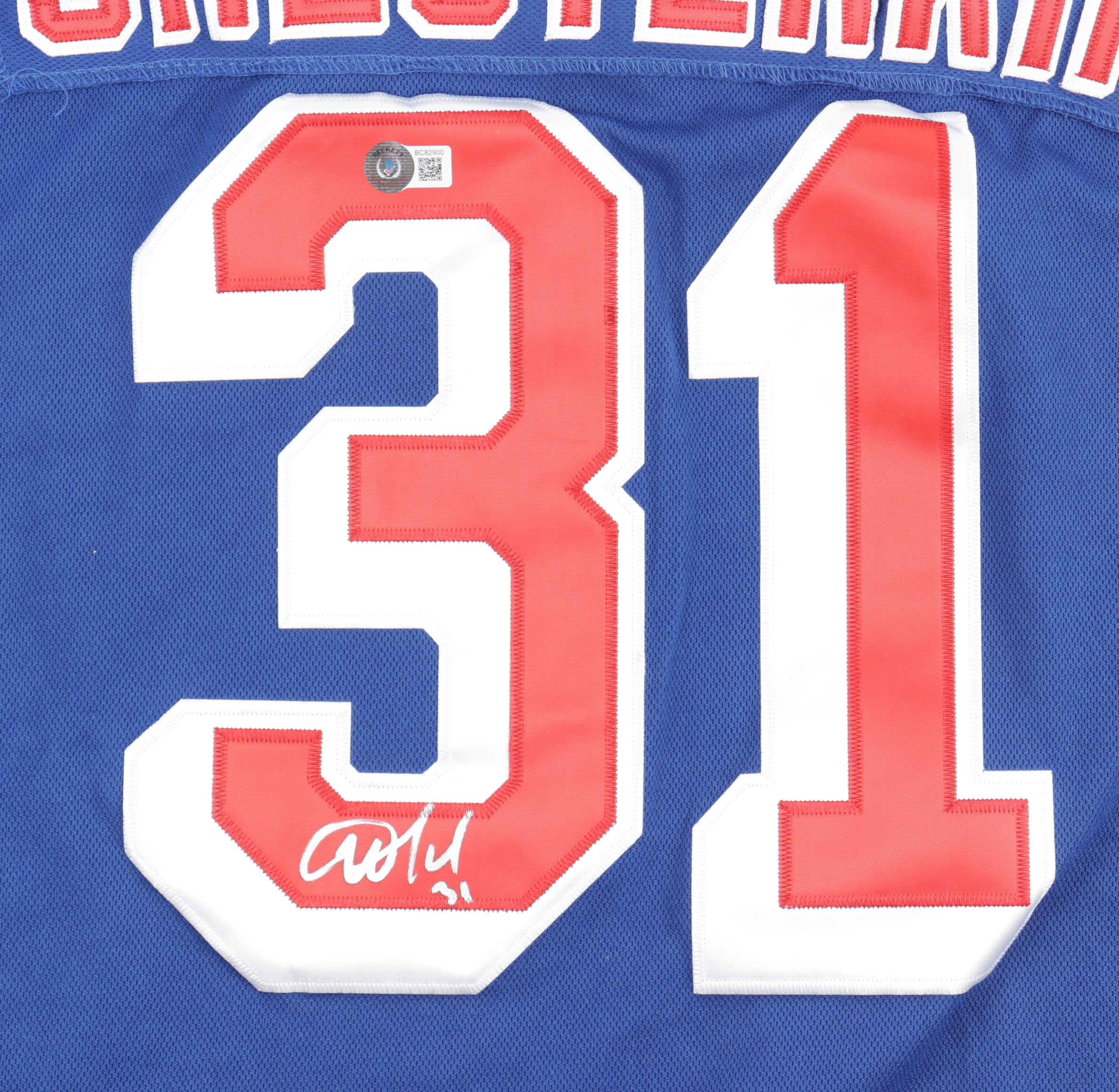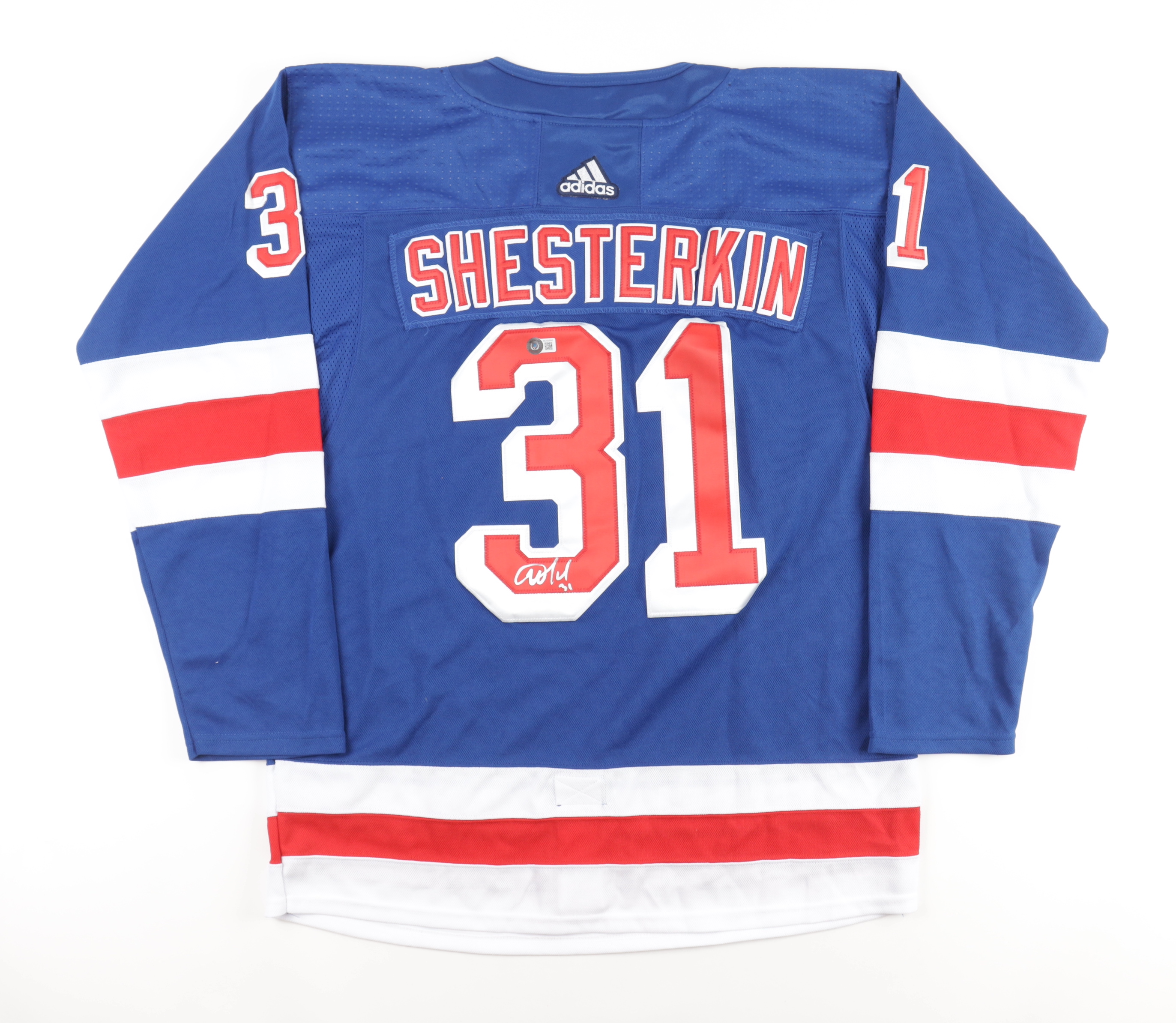 Adidas jersey everything sewn on, size 52. Hand-signed by Igor Shesterkin.