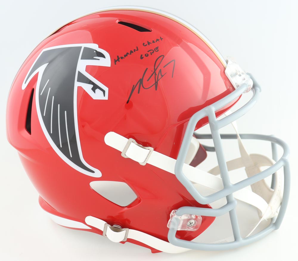 Riddell Atlanta Falcons full-size Speed replica helmet. Hand-signed and inscribed by Michael Vick.
