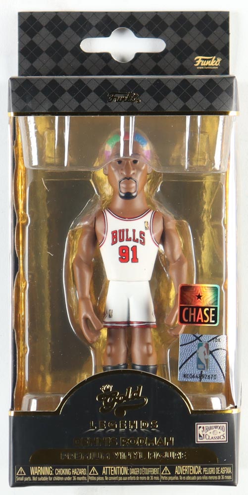 Funko Gold Legends Premium Vinyl Figure measures approximately 6" in height and features Dennis Rodman (Chicago Bulls, HOF). Please note that the item is unsigned.