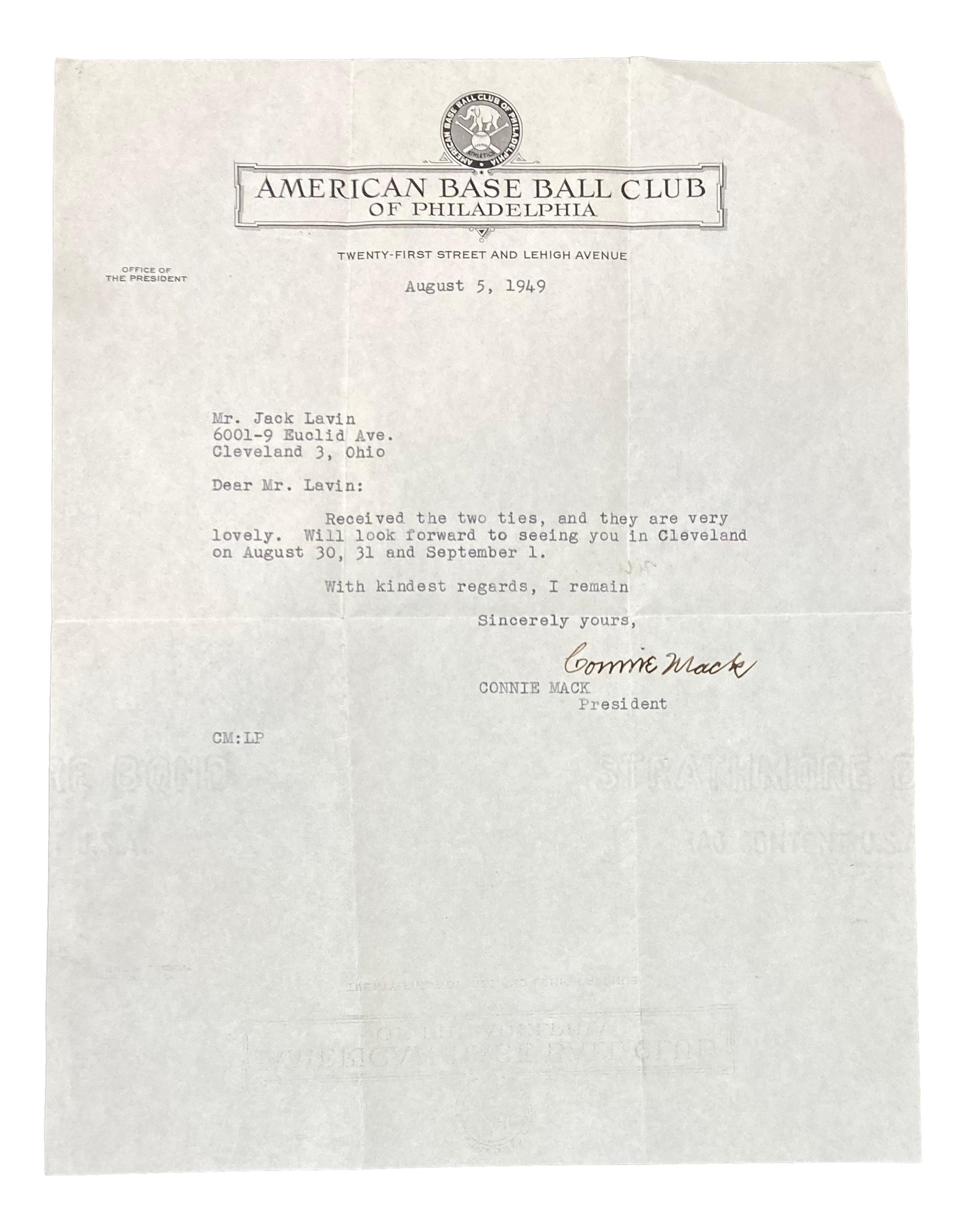 1949 letter has been hand-written and signed by Connie Mack (D. 1956, Philadelphia Athletics, HOF).