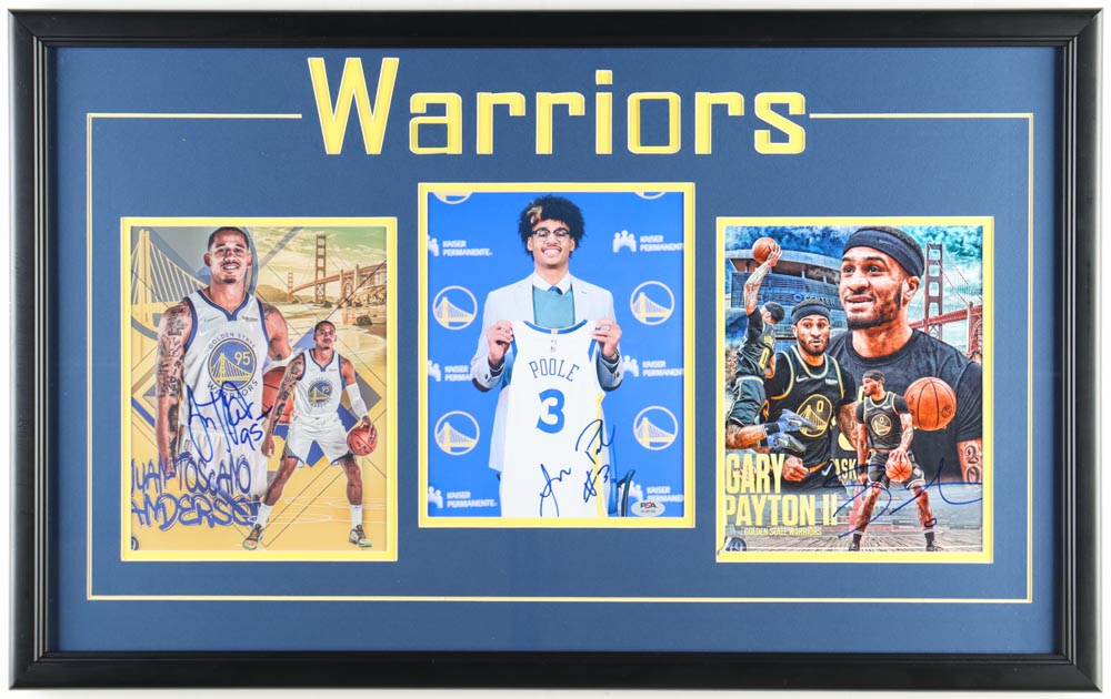 Juan Toscano-Anderson, Jordan Poole & Gary Payton II Signed Warriors Custom Framed Photo Display (PSA)