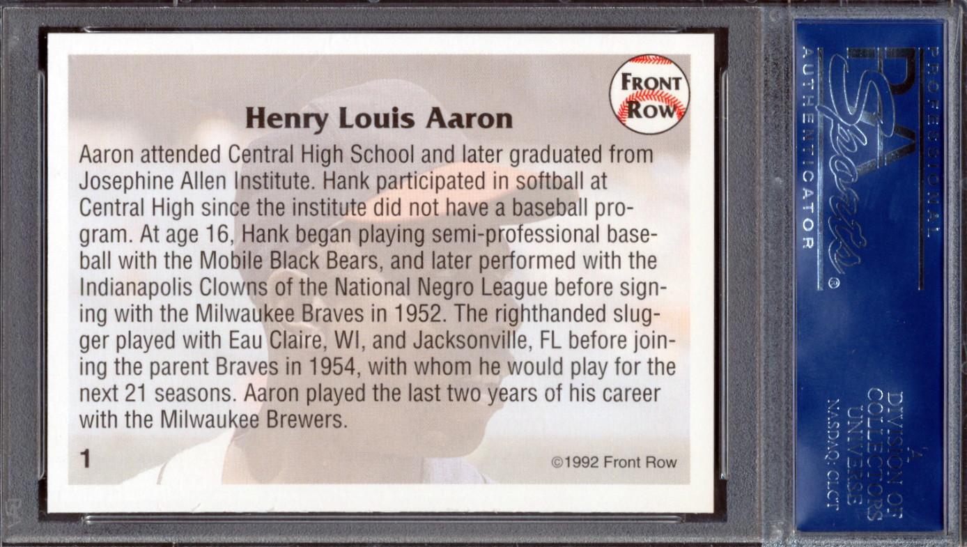 Hank Aaron Signed 1992 Front Row Aaron #1 (PSA | Autograph Graded PSA 10)
