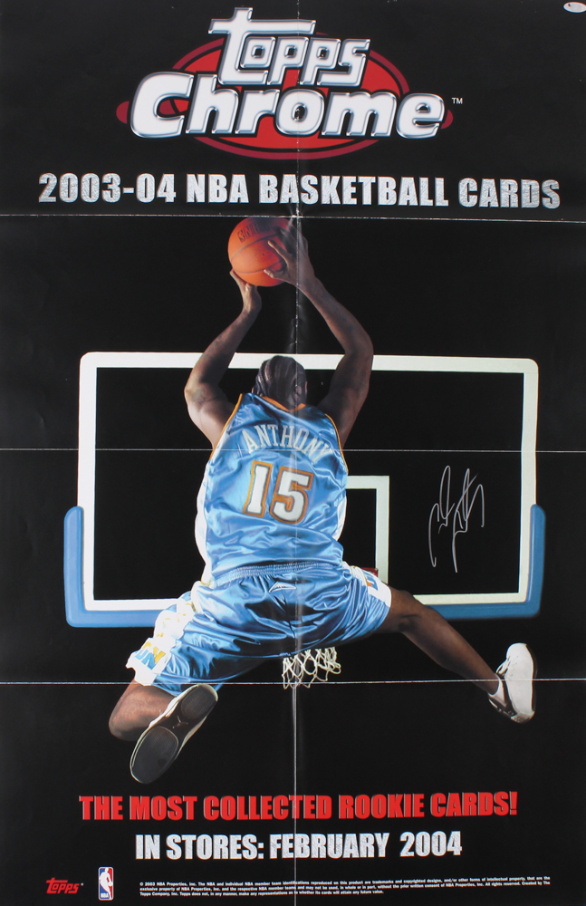 Original 2003-04 Topps Chrome Poster measures 21" x 33" in size. Hand-signed in silver paint pen by Carmelo Anthony (Knicks).