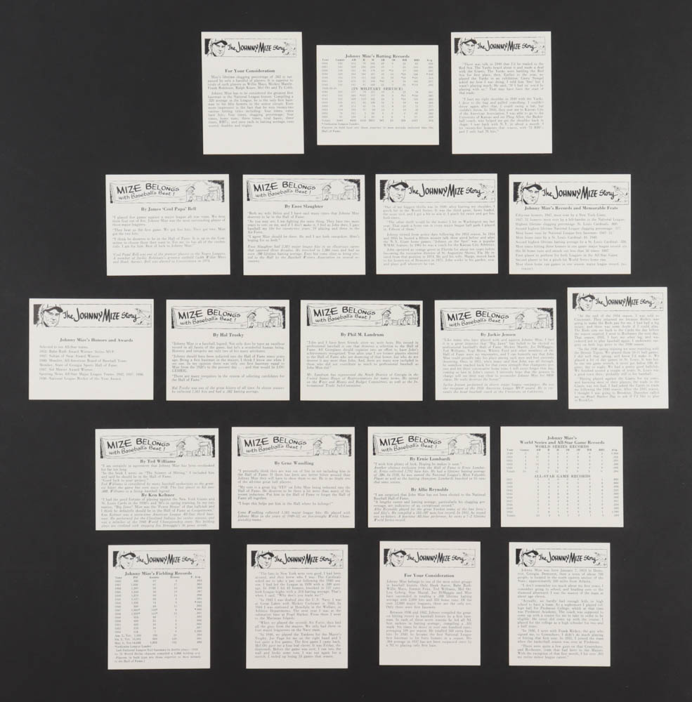 Johnny Mize Signed 1977 John Douglas Johnny Mize Complete Set of (20) Cards (JSA)