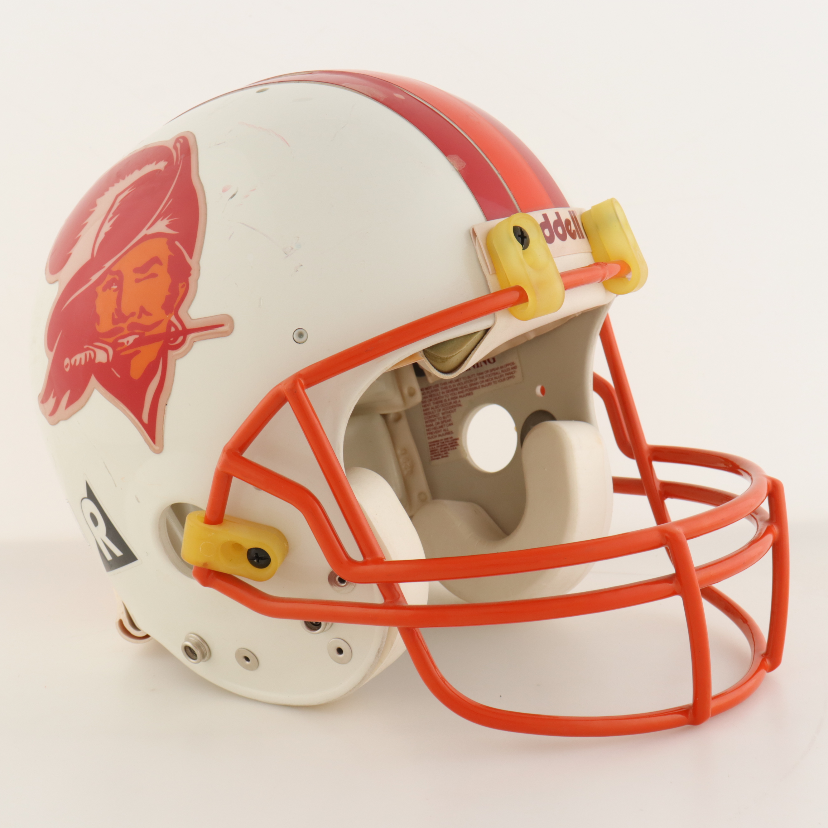 Riddell Tampa Bay Bucaneers full-size authentic on-field Throwback Alternate helmet. Please note, the helmet is unsigned and the helmet shows natural signs of wear.