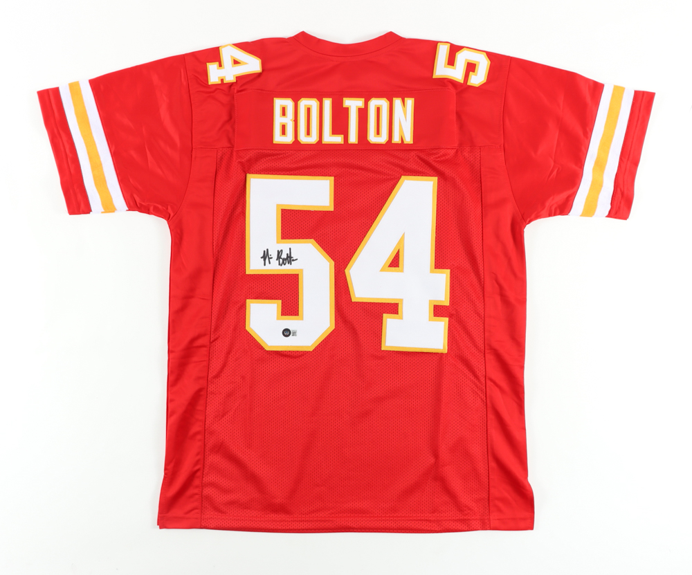 Custom jersey. Everything is sewn on, size XL. Hand-signed by Nick Bolton.