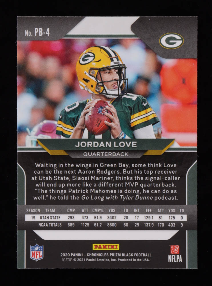Jordan Love 2020 Panini Prizm Black #4 RC