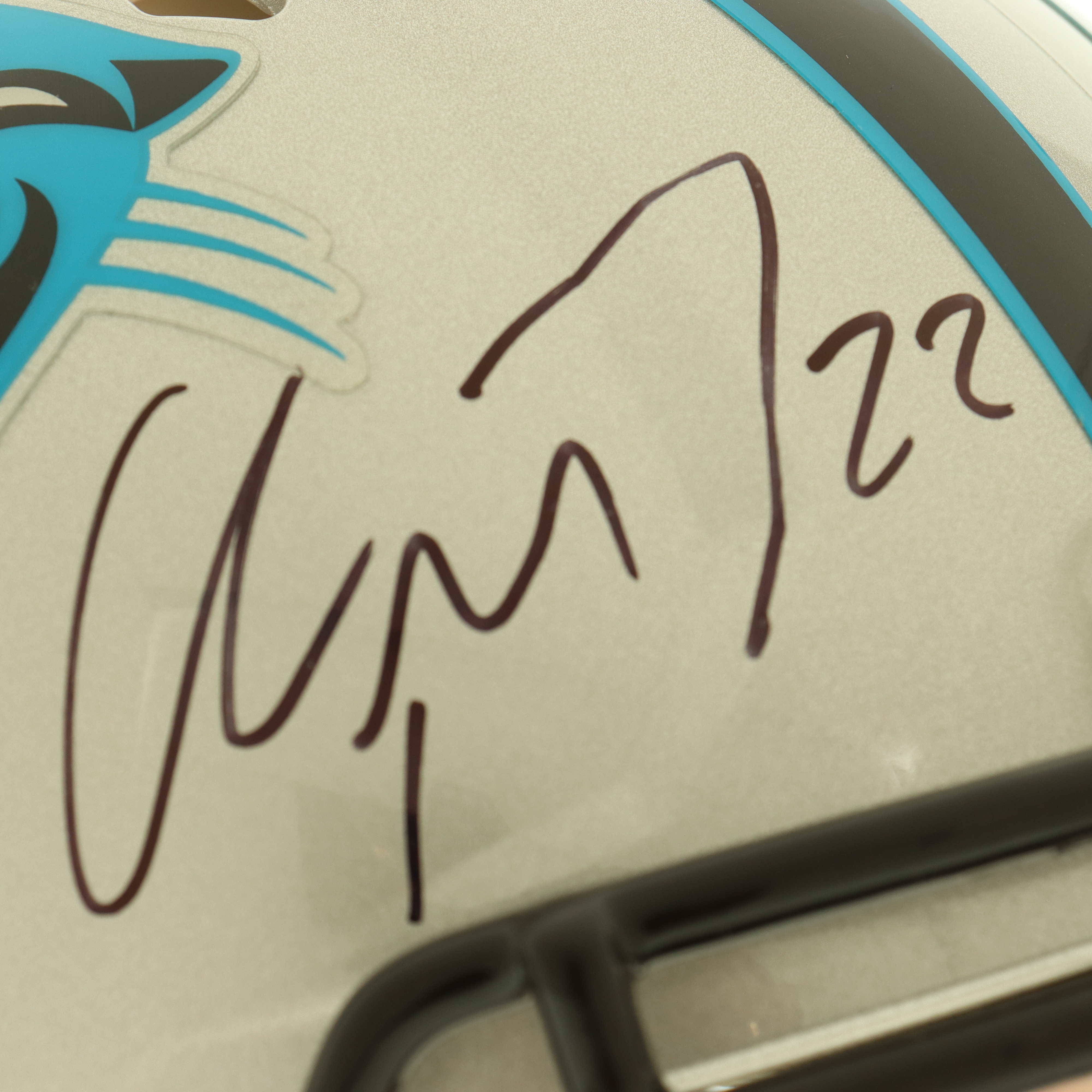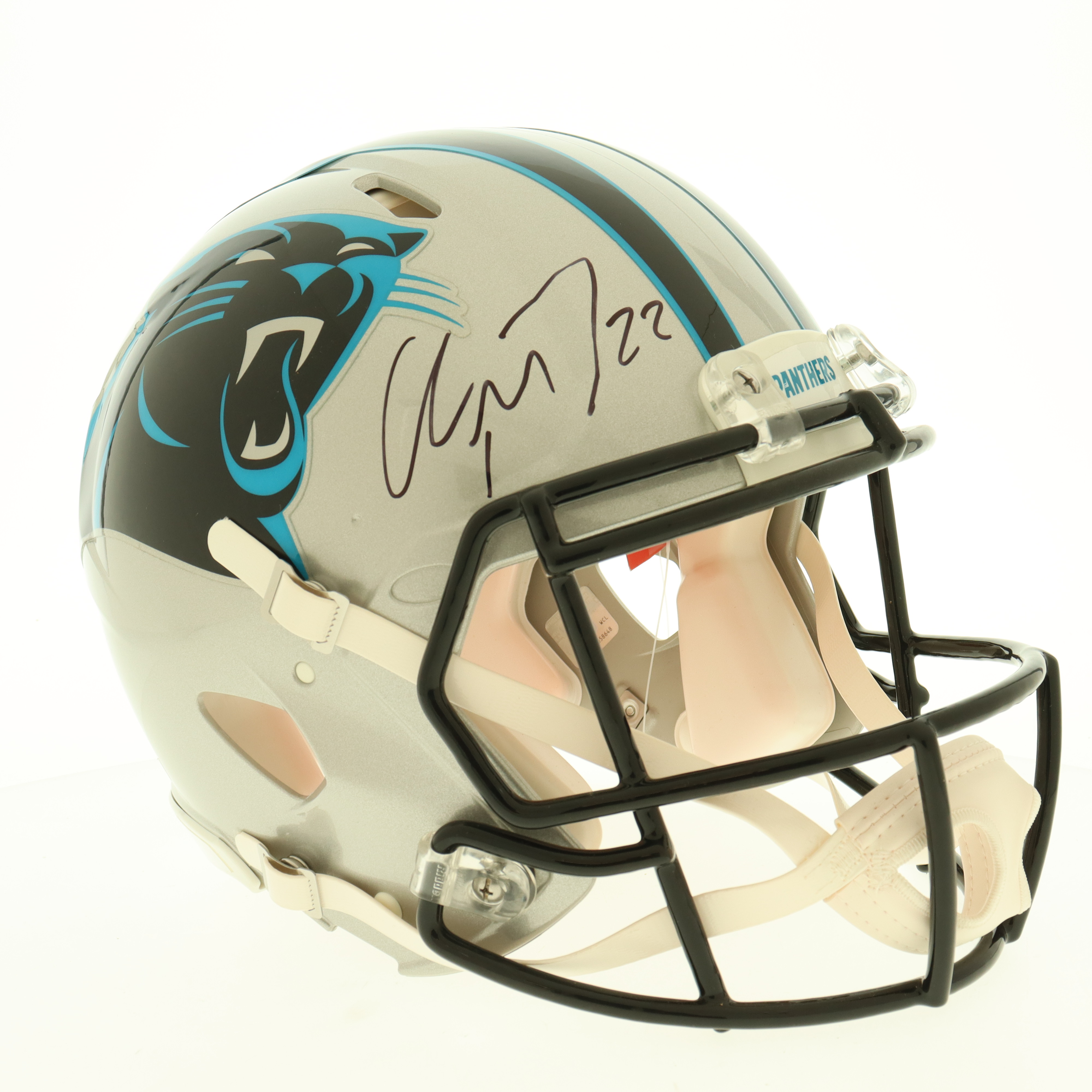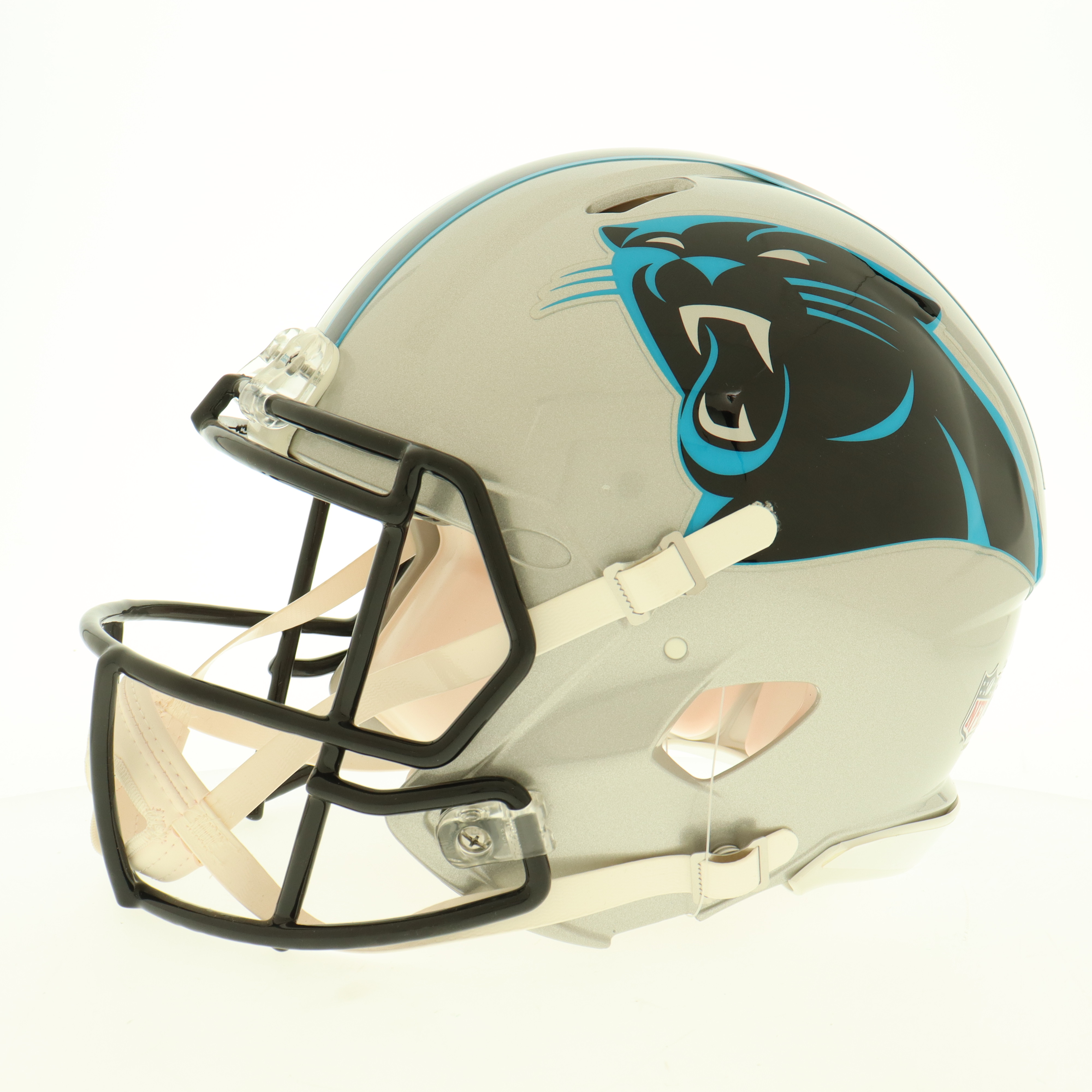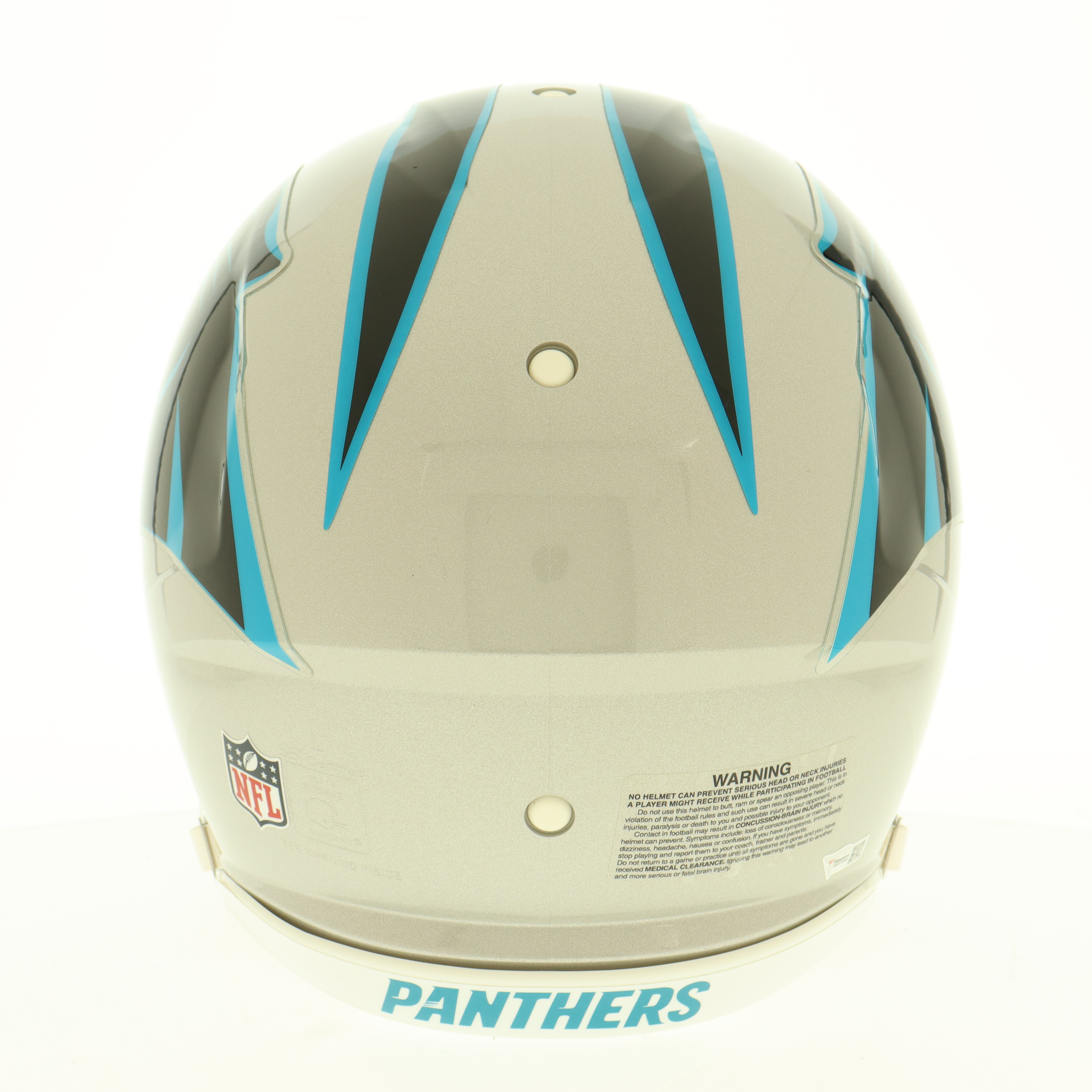Riddell Carolina Panthers authentic on-field full size speed helmet has been hand-signed by Christian McCaffrey.