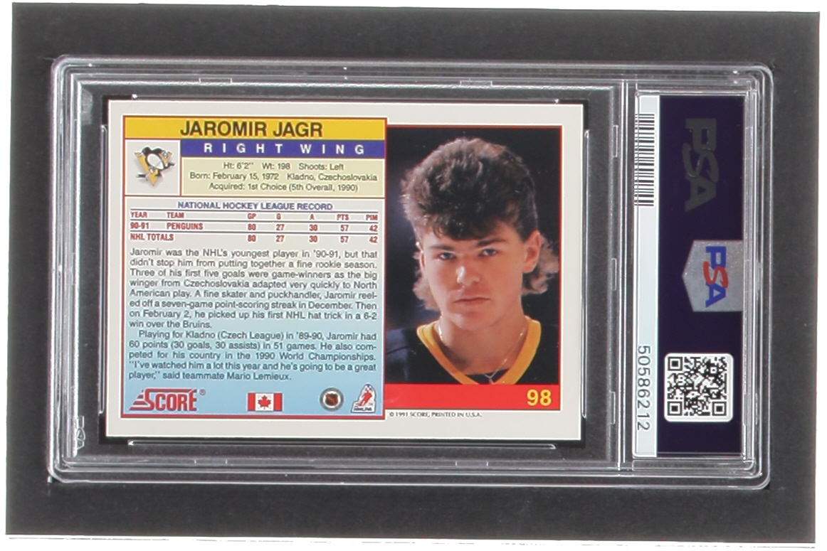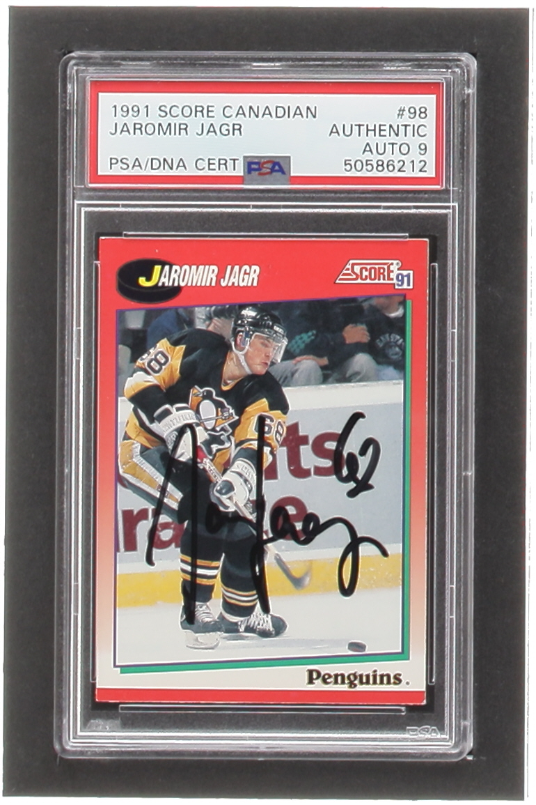 Jaromir Jagr Signed 1991-92 Score Canadian English #98 (PSA | Autograph Graded PSA 9)