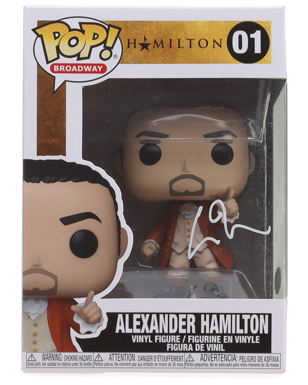 Funko Pop! vinyl figure measures approximately 4" tall and has been hand-signed on the packaging by Lin-Manuel Miranda. Please note, the window has been swapped.