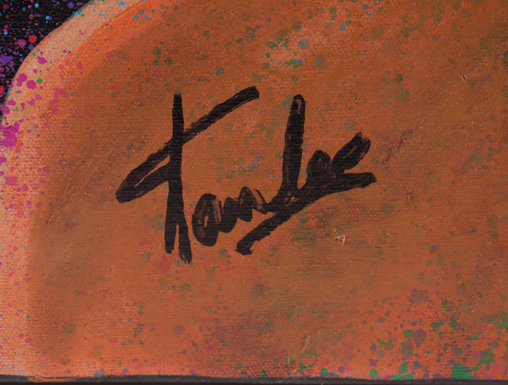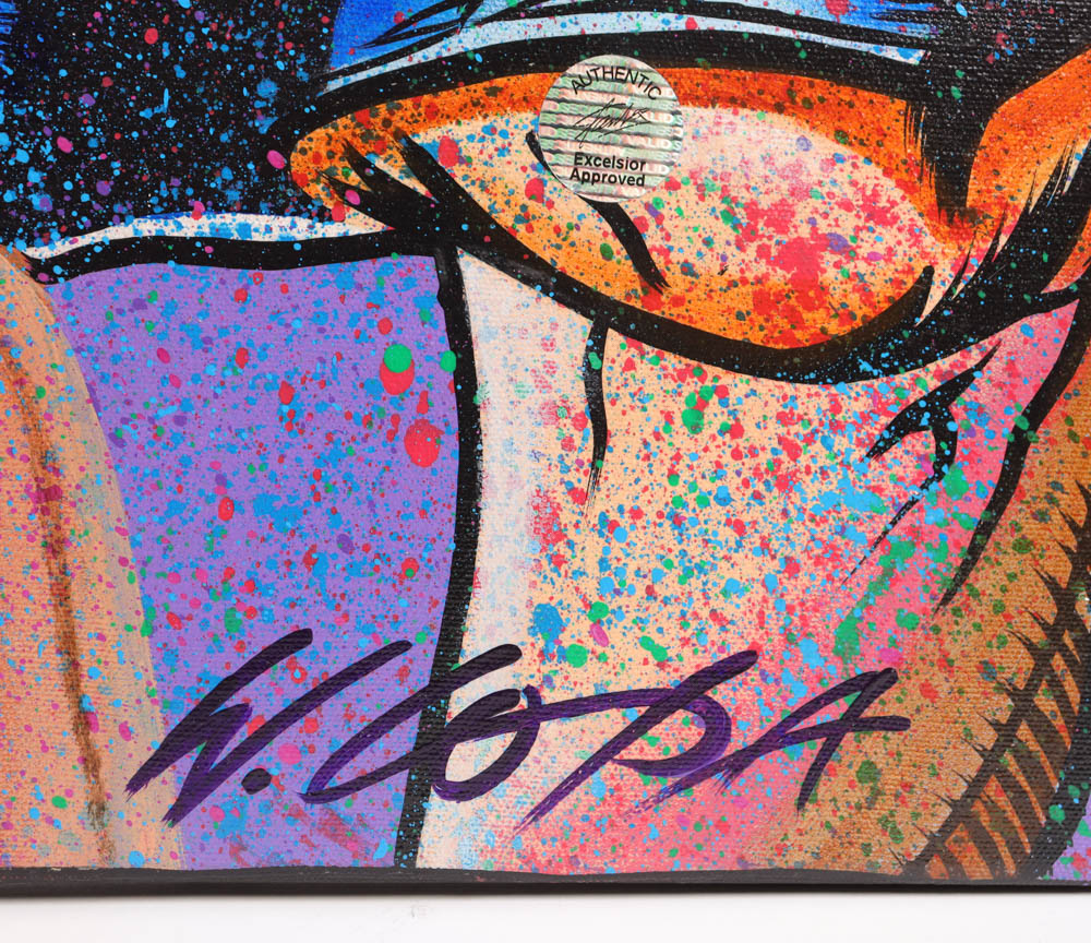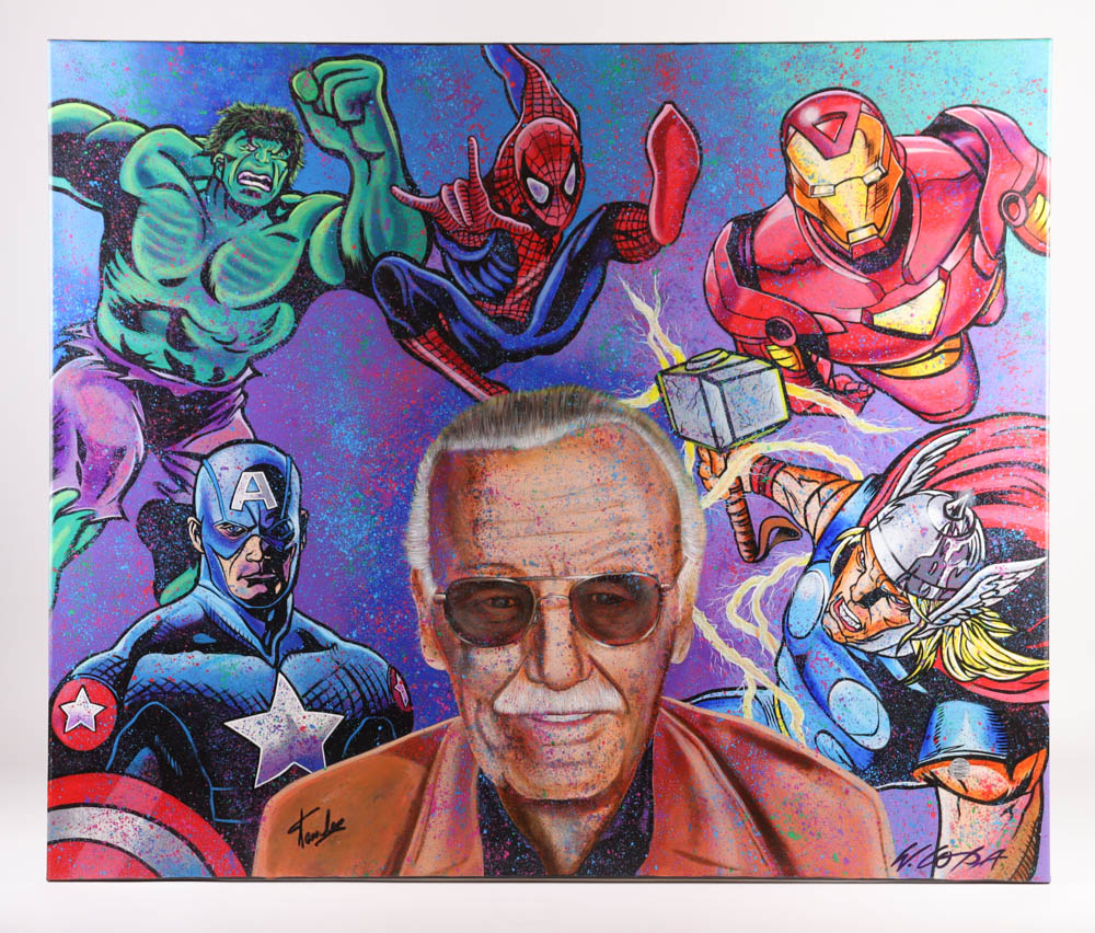 This premium giclee on Canvas measures approximately 40" x 48" and is gallery stretched and ready to hang. The piece has been hand-signed by Stan Lee (D. 2018). Also hand-signed by the artist, Bill Lopa.