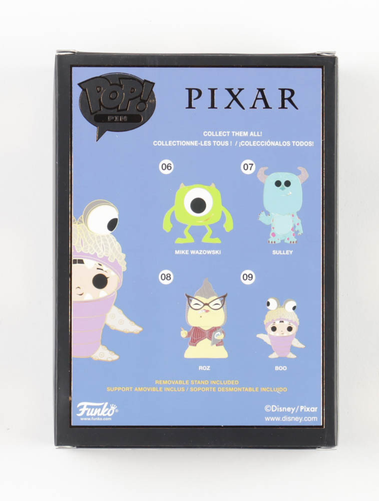 Funko Pop! enamel pin measures approximately 4" tall and has been hand-signed on the packaging by Mary Gibbs (Voice of Boo).
