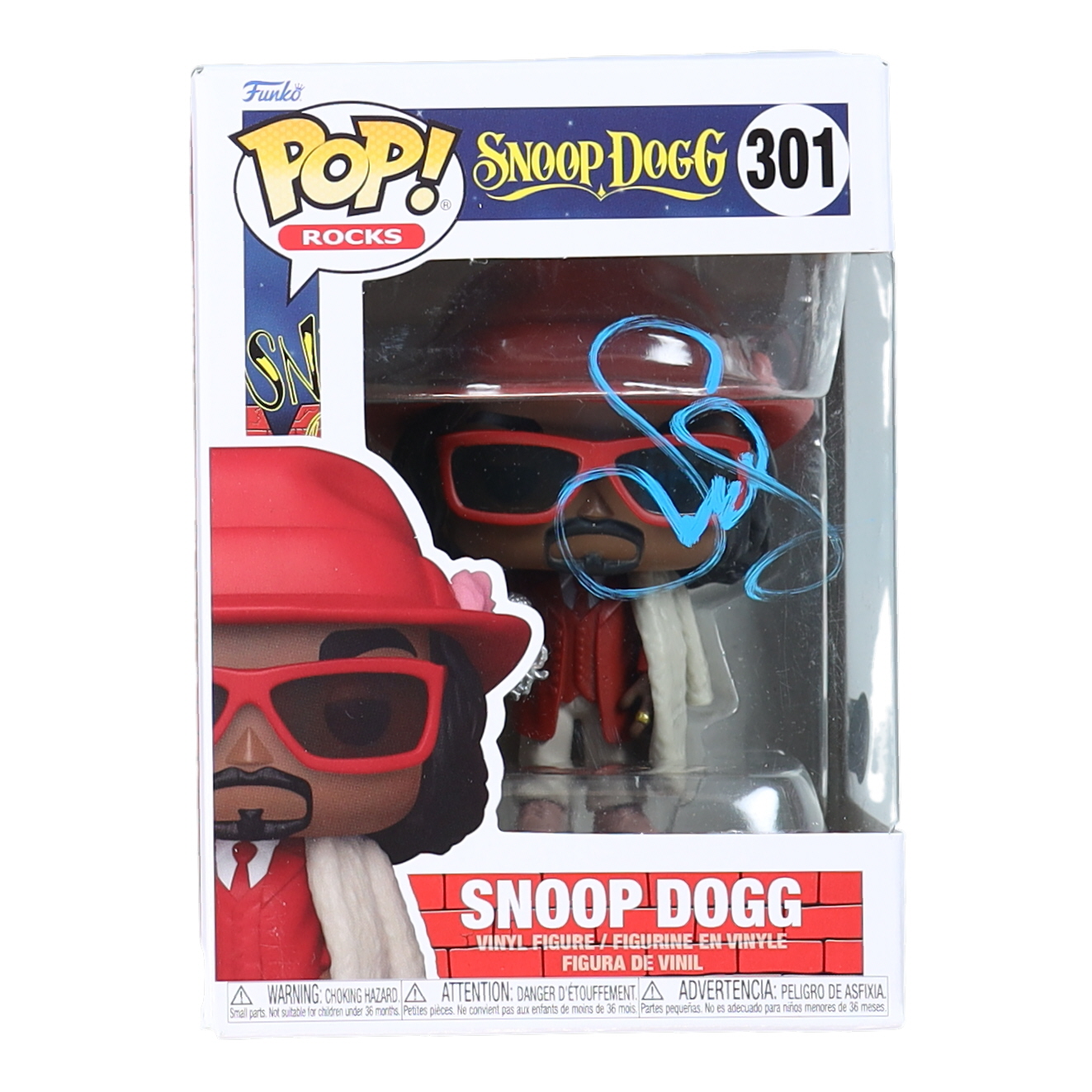 Funko Pop! vinyl figure measures approximately 4" tall and the packaging has been hand-signed by Snoop Dogg. The window has been swapped.