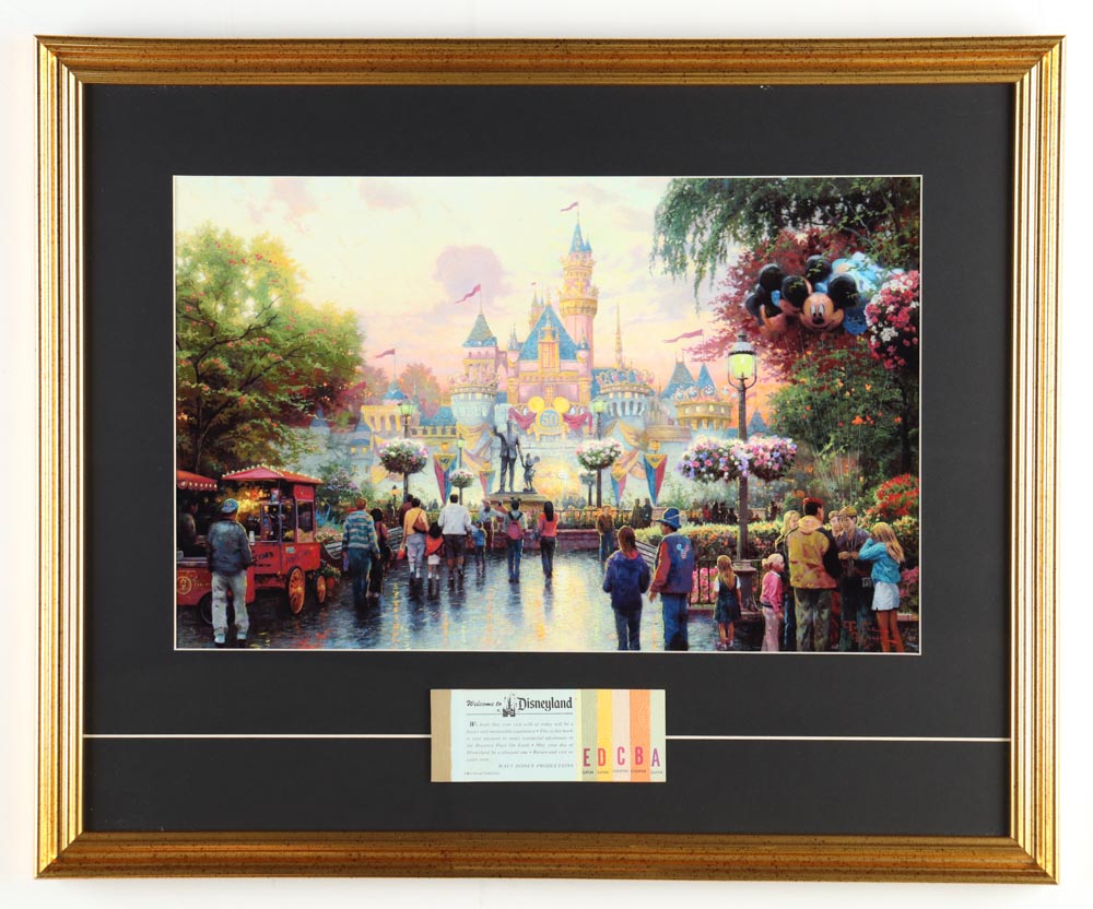 Thomas Kinkade 50th Anniversary "Disneyland" Custom Framed Print Display with Vintage Ticket Booklet