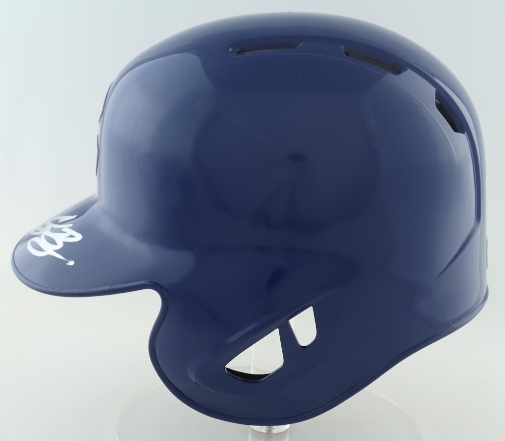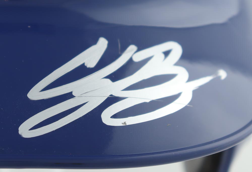 Riddell Chicago Cubs full-size replica batting helmet. Hand-signed by Cody Bellinger. Please note stand is not included.