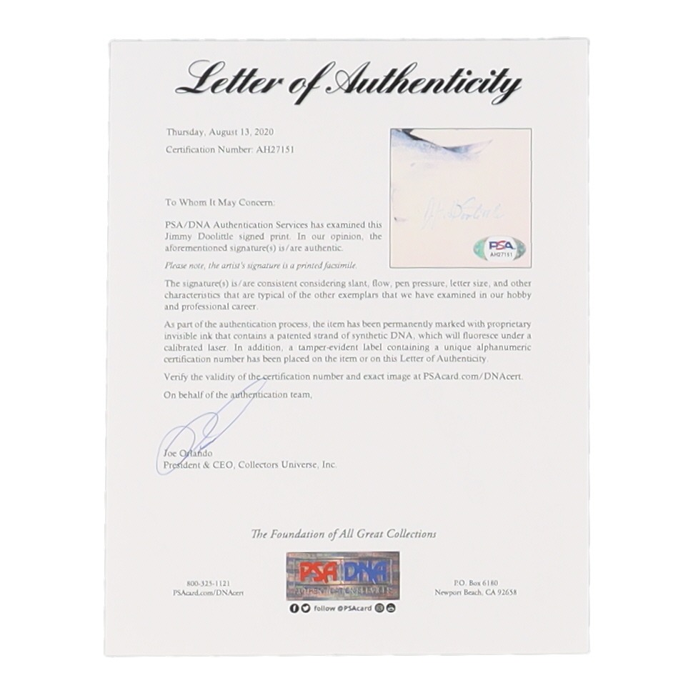 Jimmy Doolittle Signed 7.5x9.5 Print (PSA)