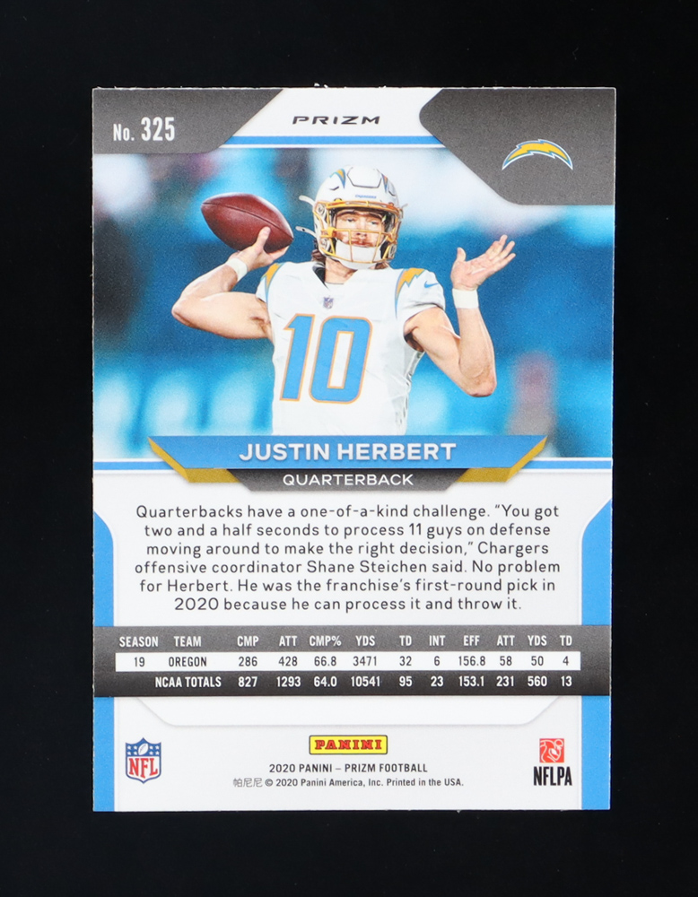 Justin Herbert 2020 Panini Prizm Prizms Neon Green Pulsar #325 RC