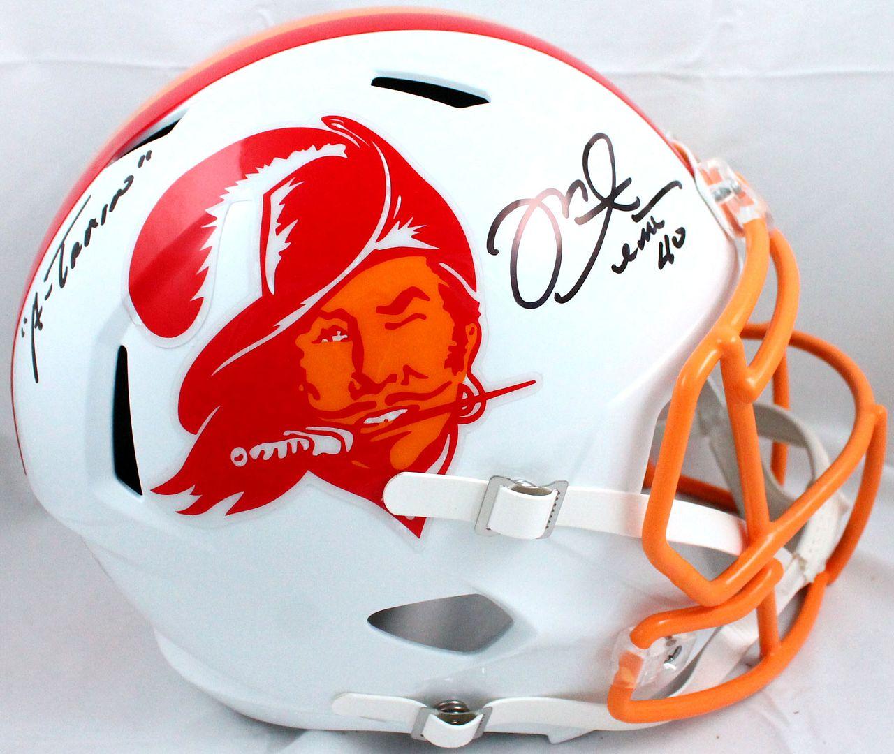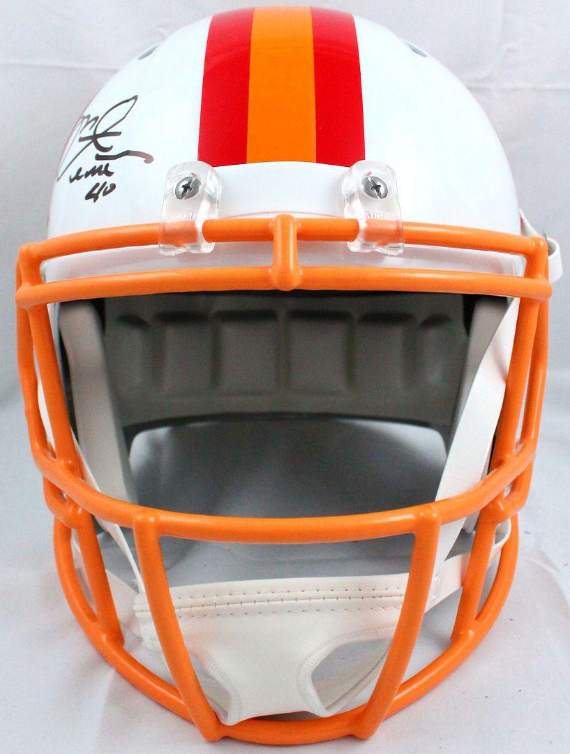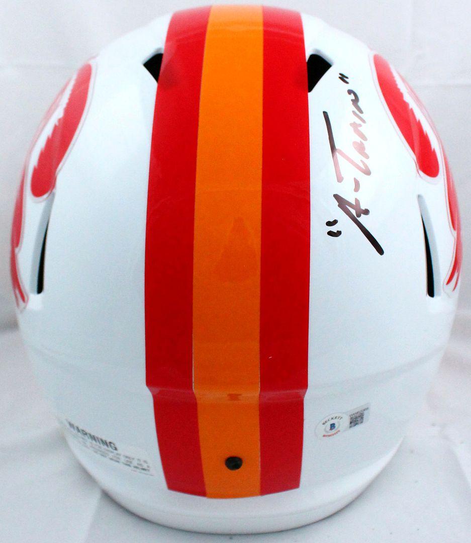 Riddell Tampa Bay Buccaneers full-size speed helmet. Has been hand-signed and inscribed Mike Alstott.