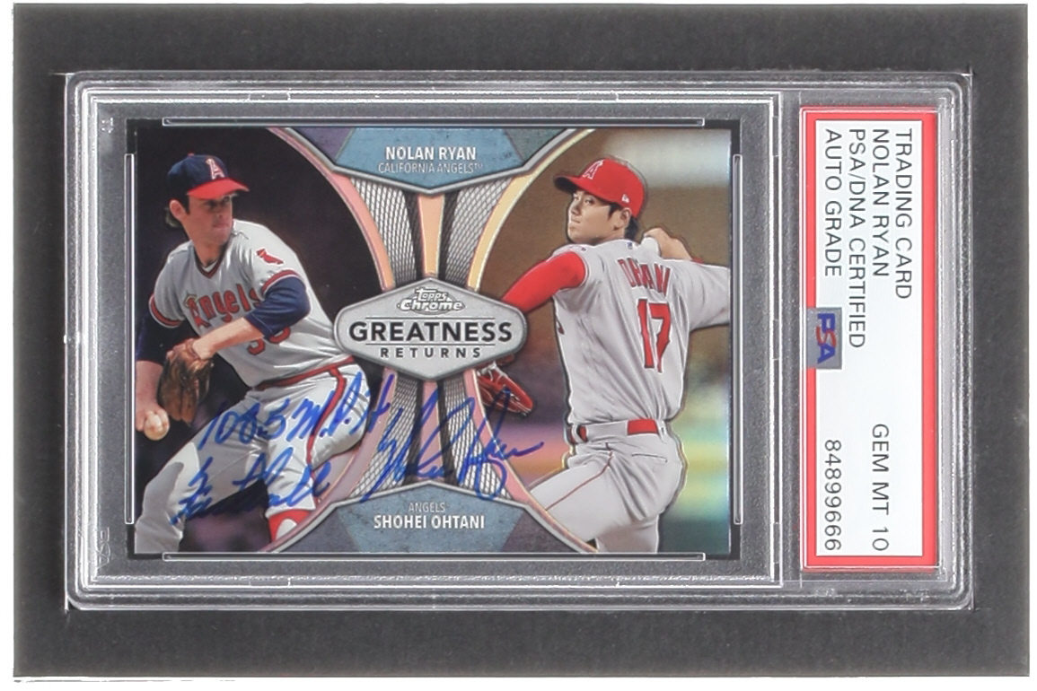 Nolan Ryan Signed 2019 Topps Chrome Greatness Returns #GRE3 Nolan Ryan / Shohei Ohtani Inscribed "108.5 MPH Fastball" (PSA)