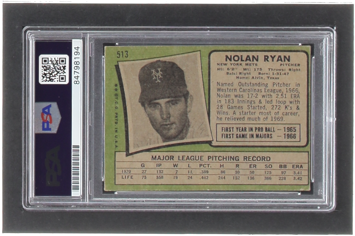 Nolan Ryan Signed 1971 Topps #513 Inscribed "108.5 MPH Fastball" (PSA)