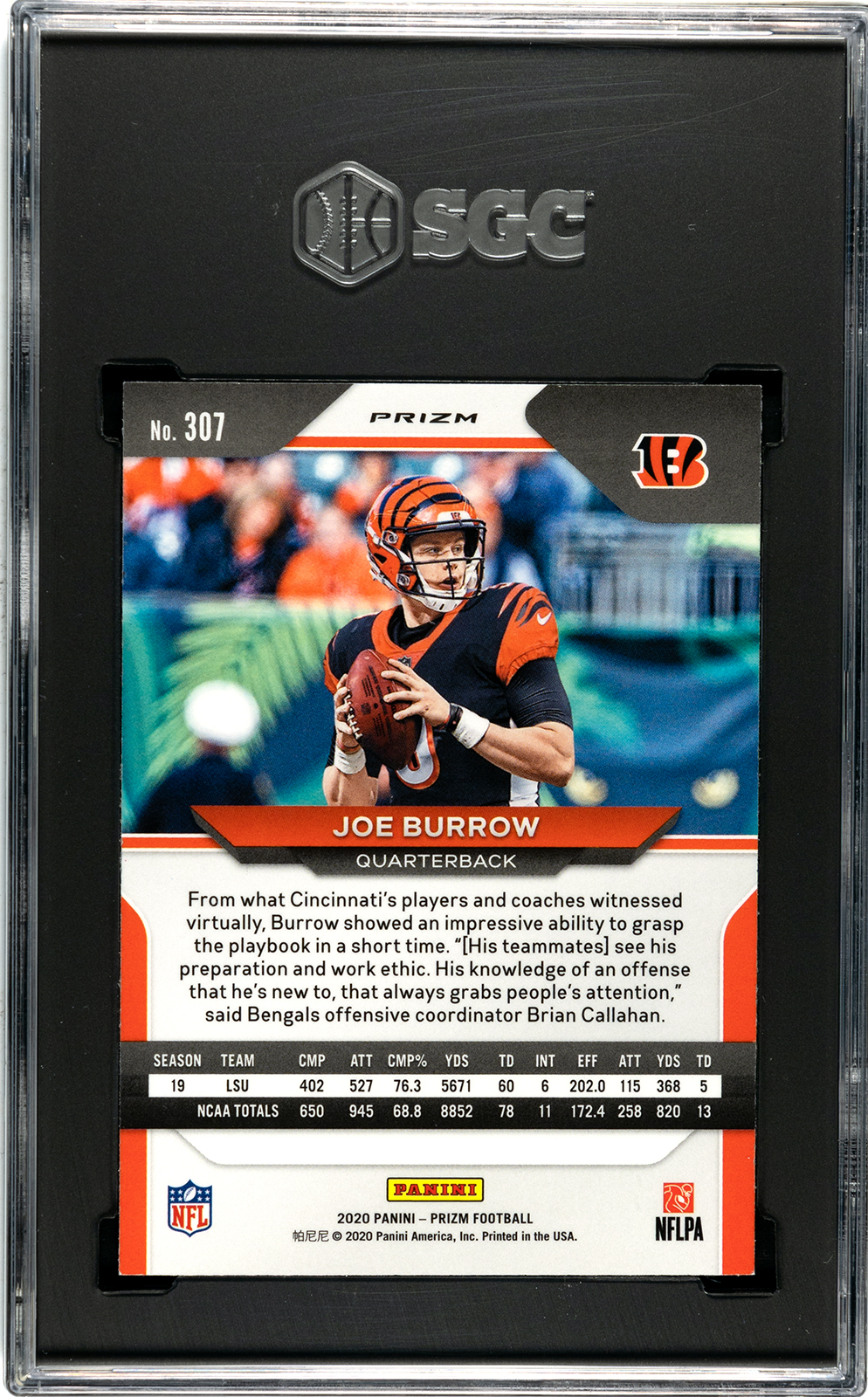 Joe Burrow 2020 Panini Prizm Prizms No Huddle #307 RC (SGC 9)