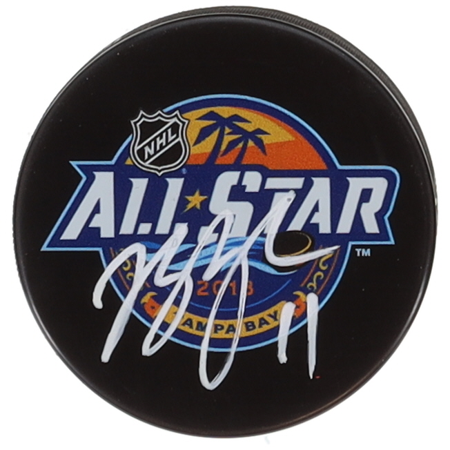 2018 All-Star Game logo hockey puck has been hand-signed by Brian Boyle